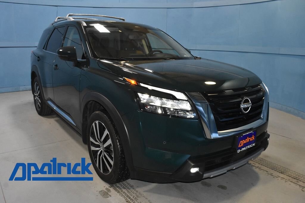 2025 Nissan Pathfinder Platinum Certified. Recent Arrival! *Prices listed do not include a $250 documentation fee, applicable tax, title, tags, license, or $195 service and preparation. All pricing, vehicle information, and features (such as accessories and color) are believed to be accurate, but we do not warrant or guarantee such accuracy. The prices shown above may vary from region to region, and incentives are subject to change. Some offers listed may not be available to all customers. All online sale commitments are subject to confirmation of continued availability of vehicle. Once availability is confirmed, online sale agreement becomes binding upon the parties. If any information found on the website is thought to be erroneous, please verify information with a customer service representative. See dealer for full details. Nissan Certified Certified, 4WD, 13 Speakers, 2nd-Row Captain Chairs, 2nd-Row Rear Headrest, 3rd row seats: bench, 4-Wheel Disc Brakes, ABS brakes, Air Conditioning, Alloy wheels, AM/FM radio: SiriusXM, Auto High-beam Headlights, Auto tilt-away steering wheel, Auto-dimming Rear-View mirror, Automatic temperature control, Black Splash Guards (set of 4), Bodyside moldings, Bose Premium Audio System, Brake assist, Bumpers: body-color, Captain's Chairs Carpeted Floor Mats (set of 4), Cargo Area Protector, Cargo Net, Cargo Package, Climate Controlled Front Bucket Seats, Cross Bars, Delay-off headlights, Driver door bin, Driver vanity mirror, Dual front impact airbags, Dual front side impact airbags, Electronic Stability Control, Emergency communication system, Exterior Parking Camera Rear, First Aid, Four wheel independent suspension, Front anti-roll bar, Front Bucket Seats, Front Center Armrest, Front dual zone A/C, Front reading lights, Fully automatic headlights, Garage door transmitter: HomeLink, Heads-Up Display, Heated door mirrors, Heated front seats, Heated rear seats, Heated steering wheel, Illuminated entry, Illuminated Kick Plate, Knee airbag, Leather steering wheel, LED Fog Lamps, Lighting Package, Low tire pressure warning, Memory seat, Navigation system: NissanConnect with Navigation and Services, NissanConnect featuring Apple CarPlay and Android Auto, NissanConnect with Navigation and Services, Occupant sensing airbag, Outside temperature display, Overhead airbag, Overhead console, Panic alarm, Passenger door bin, Passenger vanity mirror, Platinum Captain Chairs Package, Power door mirrors, Power driver seat, Power Liftgate, Power moonroof, Power passenger seat, Power steering, Power windows, Radio data system, Radio: AM/FM Audio System, Rain sensing wipers, Rear air conditioning, Rear anti-roll bar, Rear reading lights, Rear seat center armrest, Rear side impact airbag, Rear window defroster, Rear window wiper, Reclining 3rd row seat, Remote keyless entry, Security system, Semi-Aniline Leather-Appointed Seating Surfaces, Speed control, Speed-sensing steering, Speed-Sensitive Wipers, Split folding rear seat, Spoiler, Steering wheel memory, Steering wheel mounted audio controls, Tachometer, Telescoping steering wheel, Tilt steering wheel, Traction control, Trip computer, Turn signal indicator mirrors, Variably intermittent wipers, Ventilated front seats, Welcome Lighting, Wheels: 20" x 8J Machined Alloy, 4WD. CARFAX One-Owner. Clean CARFAX. Nissan Certified Details: