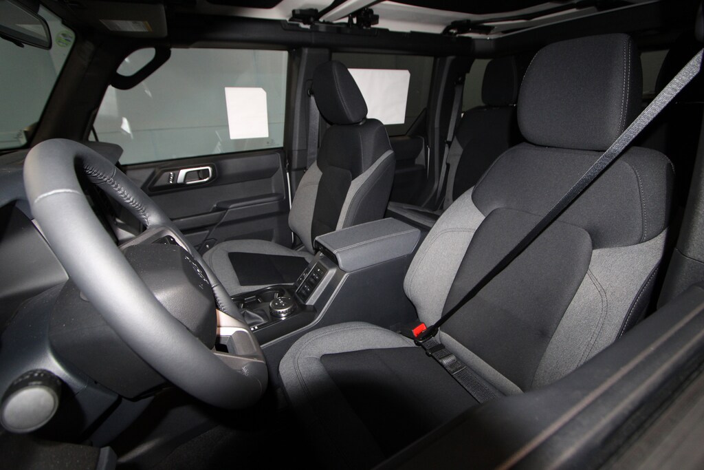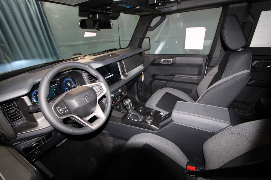2-Door Intelligent Access with Lock/Unlock, 4-Wheel Disc Brakes, 4.46 Axle Ratio, 7 Speakers, ABS brakes, Air Conditioning, Alloy wheels, AM/FM radio: SiriusXM with 360L, AM/FM Stereo, Ambient Footwell Lighting, Auto High-Beam Headlamps, Auto High-beam Headlights, Black Appearance Package, Black Molded-in-Color Door Handles, Black Molded-in-Color Fender Flares, Black Molded-in-Color Sideview Mirror Caps, Black-Painted Molded-in-Color Grille, BLIS Blind Spot Information System, Brake assist, Cloth Bucket Seats, Compass, Connected Navigation, Delay-off headlights, Driver and Front Passenger Illuminated Sliding Visor Vanity Mirrors, Driver door bin, Driver vanity mirror, Dual front impact airbags, Dual front side impact airbags, Dual Smart Charging USB Ports, Dual-Zone Electronic Automatic Temperature Control, Electronic Stability Control, Emergency communication system: 911 Assist, Equipment Group 222A Mid Package, Exterior Parking Camera Rear, Ford Connectivity Package (1-Year Included), Front anti-roll bar, Front Bucket Seats, Front Center Armrest, Front reading lights, Front Row Heated Seats, Front wheel independent suspension, Fully automatic headlights, Hard Top Sound Deadening Headliner, Heated door mirrors, Illuminated entry, Integrated roll-over protection, Lane-Keeping System, Low tire pressure warning, Occupant sensing airbag, Outside temperature display, Overhead airbag, Overhead console, Panic alarm, Passenger door bin, Passenger vanity mirror, Power door mirrors, Power steering, Power windows, Pre-Collision Assist with Automatic Emergency Braking, Pro Power Onboard - 400W, Radio data system, Rear Parking Sensors, Rear-View Camera, Rear-Window Defroster and Washer, Remote keyless entry, Security system, Shadow Black Painted Hard Top, SiriusXM with 360L, Speed control, Split folding rear seat, Steering wheel mounted audio controls, SYNC 4, Tachometer, Telescoping steering wheel, Tilt steering wheel, Traction control, Trip computer, Variably intermittent wipers, Wheels: 17" Carbonized Gray-Painted Aluminum.