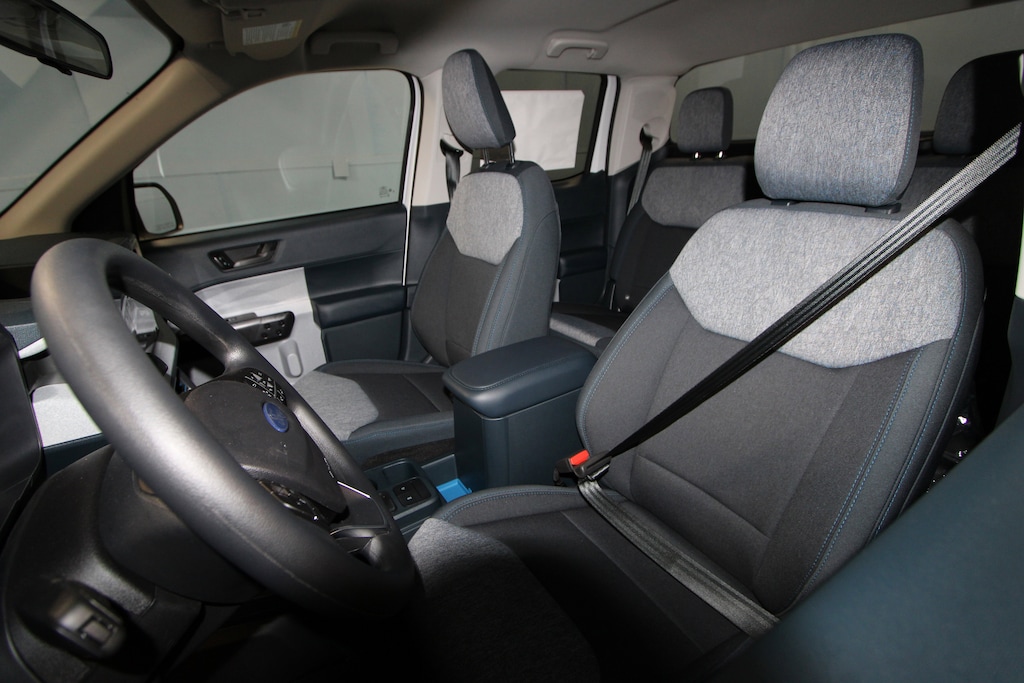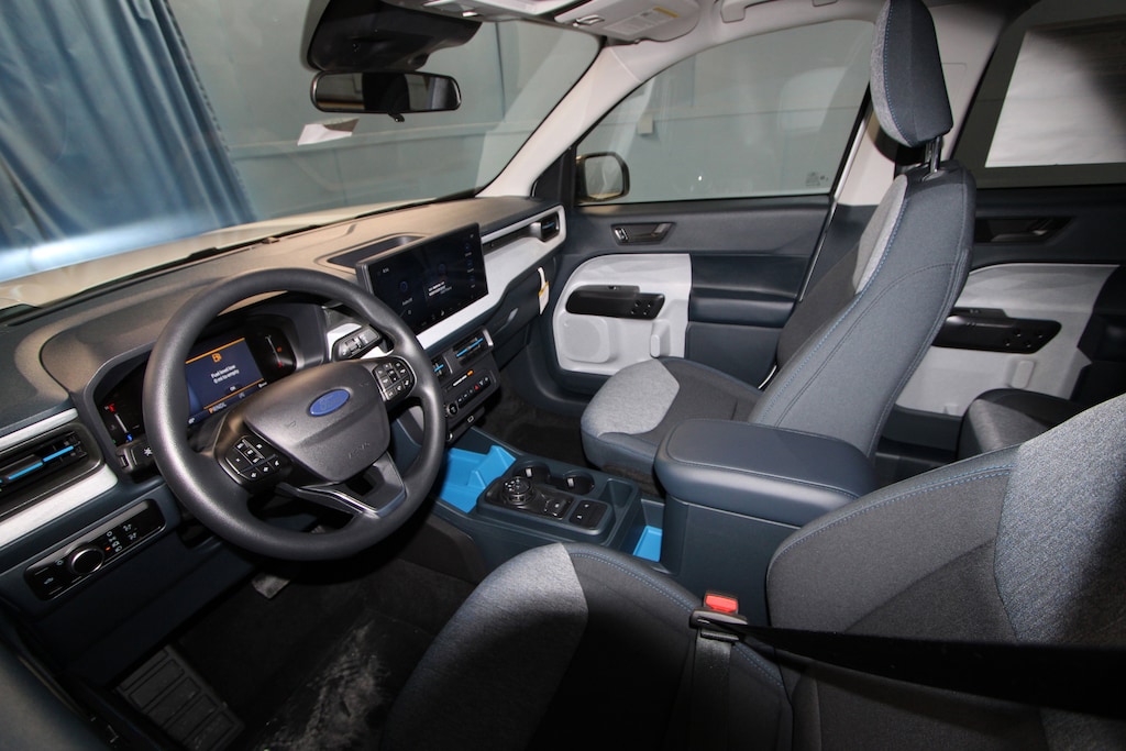 2.91 Axle Ratio, 4-Wheel Disc Brakes, 6 Speakers, ABS brakes, Air Conditioning, Alloy wheels, AM/FM radio: SiriusXM with 360L, Apple CarPlay/Android Auto, Auto High Beams, Auto High-beam Headlights, Automatic temperature control, Brake assist, Bumpers: body-color, Compass, Delay-off headlights, Driver door bin, Driver vanity mirror, Dual front impact airbags, Dual front side impact airbags, Electronic Stability Control, Emergency communication system: SYNC 4 911 Assist, Exterior Parking Camera Rear, Ford Connectivity Package (1-Year Included), Four wheel independent suspension, Front and Rear Floor Liners Without Carpet Mats, Front anti-roll bar, Front Bucket Seats, Front Center Armrest, Front reading lights, Fully automatic headlights, Illuminated entry, Internet access capable: 5G Modem - Ford Connectivity Package, Intersection Assist, Knee airbag, Lane-Keeping System, Low tire pressure warning, Occupant sensing airbag, Outside temperature display, Overhead airbag, Overhead console, Panic alarm, Passenger door bin, Passenger vanity mirror, Power door mirrors, Power steering, Power windows, Pre-Collision Assist with Automatic Emergency Braking, Radio data system, Radio: AM/FM Stereo with 6 Speakers, Rear anti-roll bar, Rear seat center armrest, Rear step bumper, Rear-View Camera, Remote keyless entry, Security system, SiriusXM with 360L, Speed control, Speed-sensing steering, Steering wheel mounted audio controls, SYNC 4 with Enhanced Voice Recognition, Telescoping steering wheel, Tilt steering wheel, Traction control, Trip computer, Unique Cloth Front Bucket Seats, Wheels: 17" Carbonized Gray Painted Aluminum.