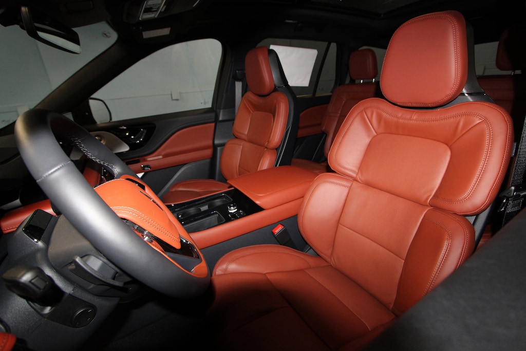 14 Speakers, 30-Way Perfect Position Seats with Active Motion, 3rd row seats: split-bench, 4-Wheel Disc Brakes, 40/Mini Console/40 Dual Captain's Chairs, ABS brakes, Adaptive Dynamic Bending Lighting, Adaptive Pixel LED Headlamps, Adaptive suspension, Advanced Heads-Up Display, Air Conditioning, Air Glide Suspension with Dynamic Lower Entry, All-Weather 1st and 2nd Row Floor Liners, Alloy wheels, AM/FM radio: SiriusXM, Apple CarPlay/Android Auto, Audio memory, Auto Air Refresh, Auto Heated and Ventilated Driver and Passenger Seats, Auto High-beam Headlights, Auto-dimming door mirrors, Auto-dimming Rear-View mirror, Automatic temperature control, Brake assist, Bumpers: body-color, Compass, Delay-off headlights, Driver door bin, Driver vanity mirror, Dual front impact airbags, Dual front side impact airbags, Dynamic Handling Package, Electronic Stability Control, Emergency communication system: 911 Assist, Equipment Group 201A Reserve II, Four wheel independent suspension, Front anti-roll bar, Front Bucket Seats, Front Center Armrest, Front dual zone A/C, Front License Plate Bracket, Front reading lights, Full Rear Console, Fully automatic headlights, Garage door transmitter, Genuine wood console insert, Genuine wood dashboard insert, Heads-Up Display, Heated and Ventilated Rear Seats, Heated door mirrors, Heated front seats, Heated steering wheel, HVAC memory, Illuminated entry, Illuminated Lincoln Star in Grille, Illumination Package, Knee airbag, Leather steering wheel, Lincoln App, Lincoln BlueCruise Equipped (4-Years Included), Lincoln Connectivity Package (4-Years), Lincoln Digital Experience, Lincoln Dynamic Signature Lighting, Low tire pressure warning, Luxury Package, Memory seat, Navigation system: Google Maps, Occupant sensing airbag, Outside temperature display, Overhead airbag, Overhead console, Panic alarm, Passenger door bin, Passenger vanity mirror, Power door mirrors, Power driver seat, Power Liftgate, Power moonroof: Panoramic Vista Roof, Power passenger seat, Power steering, Power windows, Premium Leather Front Captain's Chairs, Radio data system, Radio: Revel Audio System with 14 Speakers, Radio: Revel Ultima 3D Audio System with 28 Speakers, Rain sensing wipers, Rear air conditioning, Rear anti-roll bar, Rear audio controls, Rear dual zone A/C, Rear reading lights, Rear window defroster, Rear window wiper, Remote keyless entry, Security system, SiriusXM, Speed control, Speed Dependent Lighting, Speed-Sensitive Wipers, Split folding rear seat, Spoiler, Steering wheel memory, Steering wheel mounted A/C controls, Steering wheel mounted audio controls, Tachometer, Telescoping steering wheel, Tilt steering wheel, Traction control, Trip computer, Turn signal indicator mirrors, Variably intermittent wipers, Ventilated front seats, Wheels: 21" Bright-Machined Aluminum with Dark Alloy Painted Pockets, Wheels: 22" Bright-Machined Aluminum with Magnetic Painted Pockets, Wireless Charging Pad.