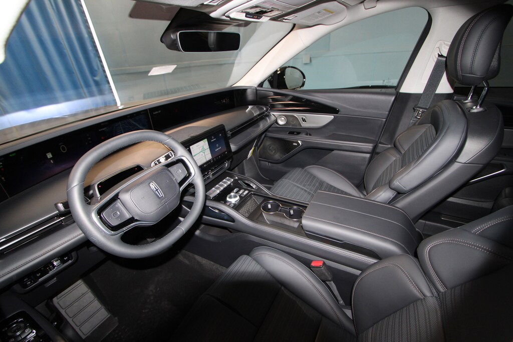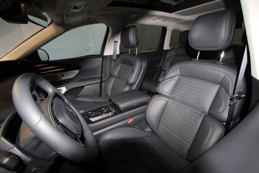 2.0L GTDI FHEV, 10 Speakers, 110V Power Converter, 4-Wheel Disc Brakes, ABS brakes, Adaptive suspension, Air Conditioning, Alloy wheels, AM/FM radio: SiriusXM with 360L, Apple CarPlay/Android Auto, Auto Air Refresh, Auto High-beam Headlights, Auto tilt-away steering wheel, Auto-dimming Rear-View mirror, Automatic temperature control, Black Exterior Elements, BlueCruise Equipped (4-Years Included), Body-Color Exterior Elements, Brake assist, Bumpers: body-color, Compass, Delay-off headlights, Digital Scent, Driver door bin, Driver vanity mirror, Dual front impact airbags, Dual front side impact airbags, Electronic Stability Control, Emergency communication system: 911 Assist, Equipment Group 203A Reserve III, Exterior Parking Camera Rear, Four wheel independent suspension, Front anti-roll bar, Front Bucket Seats, Front Center Armrest w/Storage, Front dual zone A/C, Front reading lights, Fully automatic headlights, Garage door transmitter, Hands-Free Power Liftgate, Heated door mirrors, Heated front seats, Heated steering wheel, Illuminated entry, Jet Appearance Package, Knee airbag, Leather steering wheel, Lincoln App, Lincoln Connectivity Package, Lincoln Digital Experience, Low tire pressure warning, Memory seat, Navigation System, Occupant sensing airbag, Outside temperature display, Overhead airbag, Overhead console, Panic alarm, Panoramic Vista Roof with Powershade, Passenger door bin, Passenger vanity mirror, Power door mirrors, Power driver seat, Power Liftgate, Power passenger seat, Power steering, Power windows, Premium Leather Trimmed Captain's Chairs, Premium Leather-Trimmed Heated/Ventilated Captain's Chairs, Radio data system, Radio: AM/FM Revel Audio System, Radio: AM/FM Revel Ultima 3D Audio System, Rain sensing wipers, Rear anti-roll bar, Rear Heated Seats with Switch Control, Rear reading lights, Rear seat center armrest, Rear window defroster, Rear window wiper, Remote keyless entry, Security system, SiriusXM with 360L, Speed control, Speed-sensing steering, Speed-Sensitive Wipers, Split folding rear seat, Spoiler, Steering wheel memory, Steering wheel mounted audio controls, Tachometer, Telescoping steering wheel, Tilt steering wheel, Traction control, Trip computer, Turn signal indicator mirrors, Variably intermittent wipers, Ventilated front seats, Wheels: : 22" Satin Dark Luster Aluminum, 2.0L GTDI FHEV.