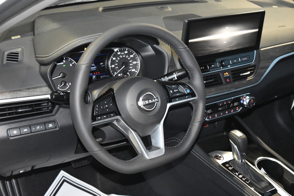 Pearl White Tricoat 2025 Nissan Altima 2.5 SL FWD CVT with Xtronic 2.5L 4-Cylinder DOHC 16V CVT with Xtronic, 4-Wheel Disc Brakes, 9 Speakers, ABS brakes, Air Conditioning, Alloy wheels, AM/FM radio: SiriusXM, Auto High-beam Headlights, Automatic temperature control, Blind Spot Warning, Body-Colored Splash Guards, Brake assist, Bumpers: body-color, Clear Bumper Protector, Compass, Delay-off headlights, Driver door bin, Driver vanity mirror, Dual front impact airbags, Dual front side impact airbags, Electronic Stability Control, Emergency communication system: NissanConnect Services, Floor Mats/Trunk Mat/Hideaway Net, Four wheel independent suspension, Front anti-roll bar, Front Bucket Seats, Front Center Armrest, Front dual zone A/C, Front reading lights, Fully automatic headlights, Heated Front Bucket Seats, Heated front seats, Heated steering wheel, Illuminated entry, Illuminated Kick Plates, Knee airbag, Leather Shift Knob, Leather-Appointed Seat Trim, Low tire pressure warning, Navigation System, NissanConnect featuring Apple CarPlay and Android Auto, Occupant sensing airbag, Outside temperature display, Overhead airbag, Overhead console, Panic alarm, Passenger door bin, Passenger vanity mirror, Power door mirrors, Power driver seat, Power moonroof, Power passenger seat, Power steering, Power windows, Radio data system, Radio: AM/FM w/Bose Premium Sound System, Rear anti-roll bar, Rear Parking Sensors, Rear reading lights, Rear seat center armrest, Rear side impact airbag, Rear window defroster, Remote keyless entry, Security system, Speed control, Speed-sensing steering, Speed-Sensitive Wipers, Split folding rear seat, Steering wheel mounted audio controls, Tachometer, Telescoping steering wheel, Tilt steering wheel, Traction control, Trip computer, Trunk Organizer Tray, Turn signal indicator mirrors, Variably intermittent wipers, Wheels: 19 Unique Machined Alloy, CVT with Xtronic.
