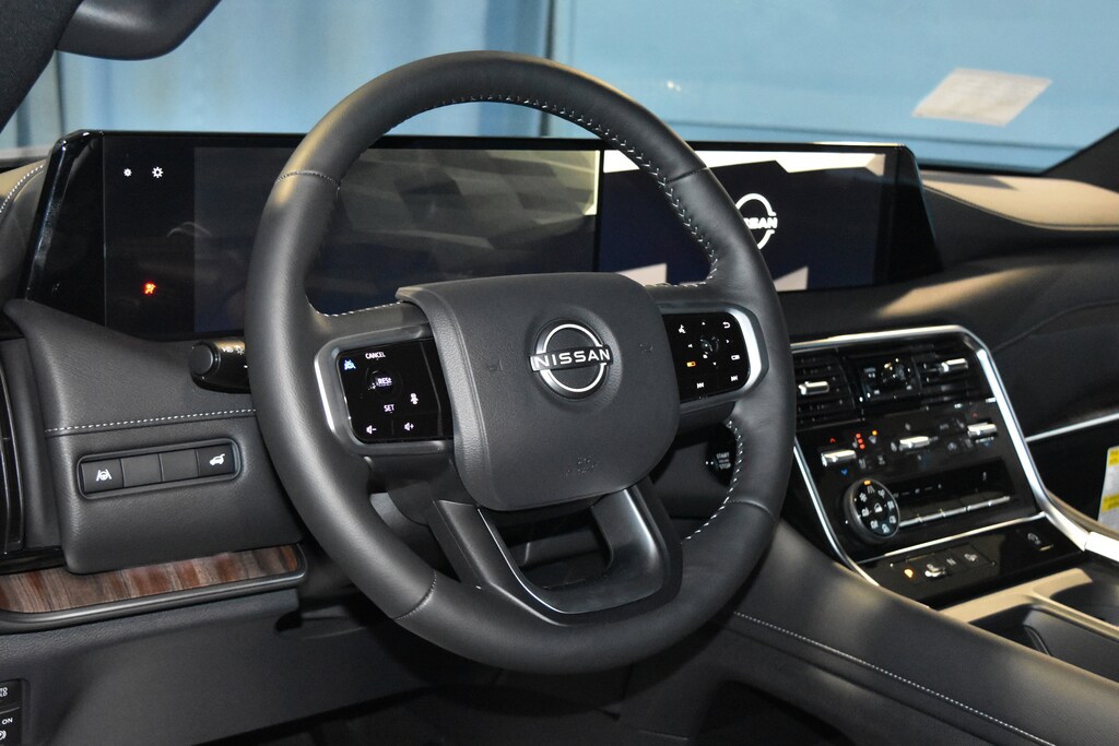 Gun Metallic 2025 Nissan Armada Platinum 4WD 9-Speed Automatic 3.5L DOHC 4WD, 12 Speakers, 20 Painted Alloy Wheels, 3rd row seats: split-bench, 4-Wheel Disc Brakes, ABS brakes, Air Conditioning, Alloy wheels, AM/FM radio: SiriusXM, Anti-whiplash front head restraints, Auto High-beam Headlights, Auto tilt-away steering wheel, Auto-dimming door mirrors, Auto-dimming Rear-View mirror, Auto-leveling suspension, Automatic temperature control, Brake assist, Bumpers: body-color, Climate Controlled Heated & Ventilated Front Seats, Delay-off headlights, Driver door bin, Driver vanity mirror, Dual front impact airbags, Dual front side impact airbags, Electronic Stability Control, Emergency communication system: NissanConnect Services, Four wheel independent suspension, Front anti-roll bar, Front Bucket Seats, Front Center Armrest, Front dual zone A/C, Front fog lights, Front reading lights, Fully automatic headlights, Garage door transmitter: myQ Connected Garage, Genuine wood dashboard insert, Heated door mirrors, Heated front seats, Heated rear seats, Heated steering wheel, HVAC memory, Illuminated entry, Knee airbag, Leather steering wheel, Low tire pressure warning, Memory seat, Navigation System, Occupant sensing airbag, Outside temperature display, Overhead airbag, Overhead console, Panic alarm, Passenger door bin, Passenger vanity mirror, Power door mirrors, Power driver seat, Power Liftgate, Power moonroof, Power passenger seat, Power steering, Power windows, Quilted Leather Seat Trim, Radio: NissanConnect w/SiriusXM 360L, Rain sensing wipers, Rear air conditioning, Rear anti-roll bar, Rear reading lights, Rear window defroster, Rear window wiper, Reclining 3rd row seat, Remote keyless entry, Security system, Speed control, Speed-sensing steering, Speed-Sensitive Wipers, Split folding rear seat, Spoiler, Steering wheel memory, Steering wheel mounted audio controls, Tachometer, Telescoping steering wheel, Tilt steering wheel, Traction control, Trip computer, Turn signal indicator mirrors, Variably intermittent wipers, Ventilated front seats, Voltmeter, 4WD.