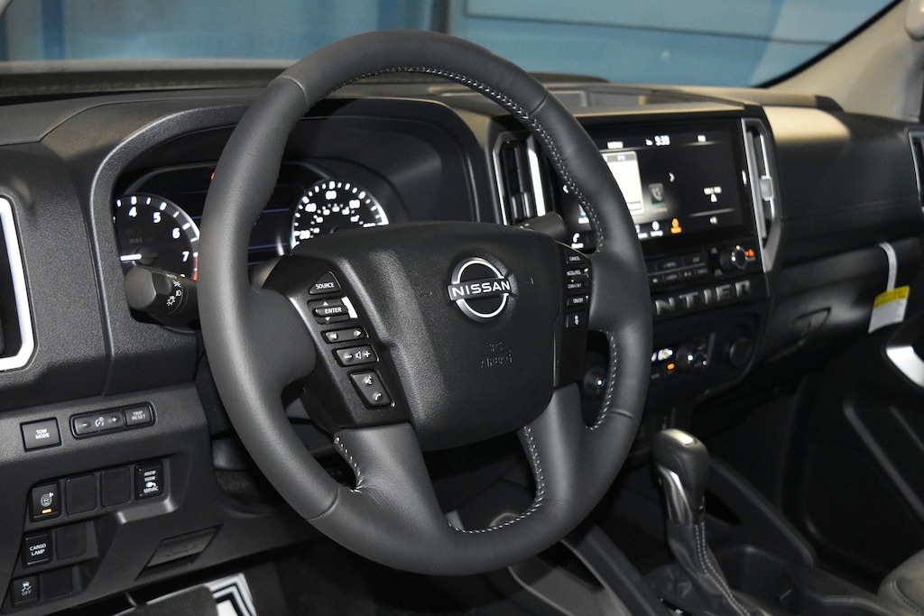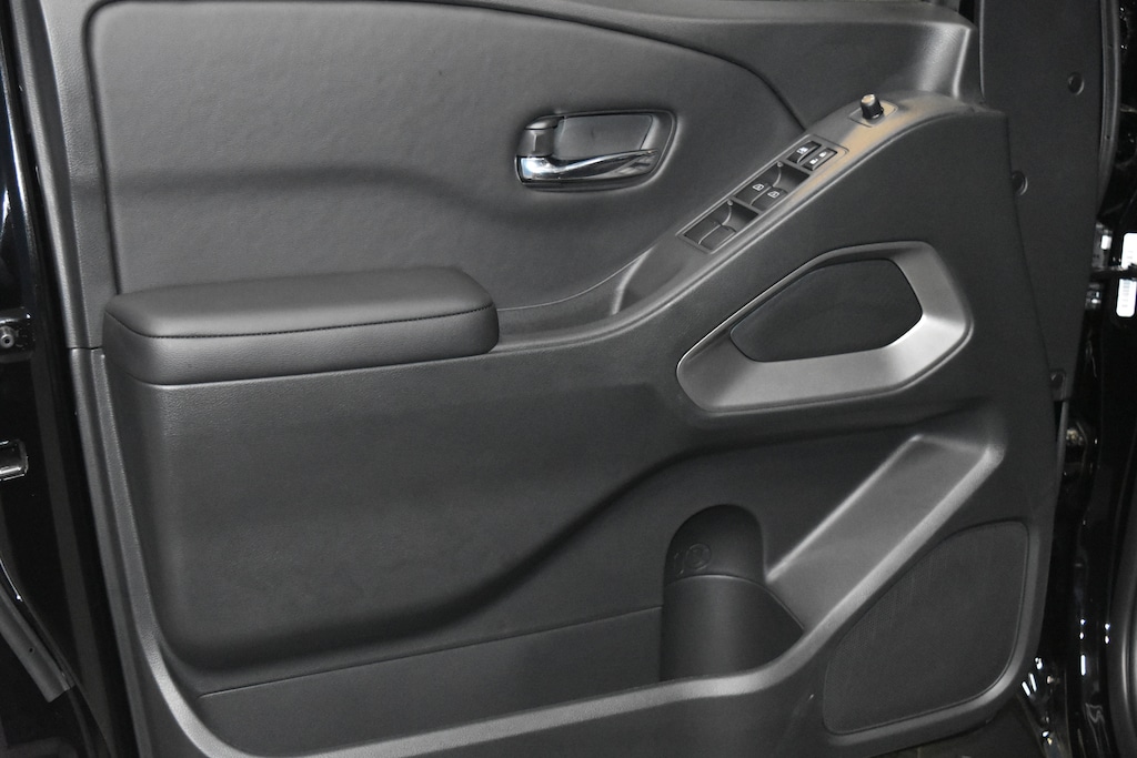 Super Black 2026 Nissan Frontier SV 4WD 9-Speed Automatic with Overdrive V6 4WD, 17 Alloy Wheels, 3.692 Axle Ratio, 4-Wheel Disc Brakes, 6 Speakers, ABS brakes, Air Conditioning, Alloy wheels, AM/FM radio: SiriusXM, Anti-whiplash front head restraints, Auto High-beam Headlights, Blind Spot Warning, Brake assist, Bumpers: body-color, Delay-off headlights, Driver door bin, Driver vanity mirror, Dual front impact airbags, Dual front side impact airbags, Electronic Stability Control, Emergency communication system, Front anti-roll bar, Front Bucket Seats, Front Center Armrest, Front reading lights, Front wheel independent suspension, Fully automatic headlights, Illuminated entry, Knee airbag, Low tire pressure warning, Occupant sensing airbag, Overhead airbag, Overhead console, Panic alarm, Passenger door bin, Passenger vanity mirror, Power door mirrors, Power driver seat, Power steering, Power windows, Premium Cloth Seat Trim, Radio data system, Radio: SiriusXM/AM/FM/Auxiliary/USB Audio System, Rear anti-roll bar, Rear seat center armrest, Rear side impact airbag, Rear step bumper, Remote keyless entry, Security system, Speed control, Speed-sensing steering, Split folding rear seat, Steering wheel mounted audio controls, Tachometer, Telescoping steering wheel, Tilt steering wheel, Traction control, Trip computer, Variably intermittent wipers, Voltmeter, Wireless Apple CarPlay/Wireless Android Auto, 4WD.