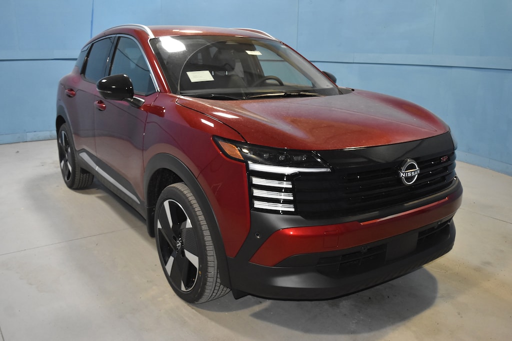 Scarlet Ember Tintcoat 2026 Nissan Kicks SR AWD CVT with Xtronic 2.0L DOHC 17 Alloy Wheels, 19 Alloy Wheels, 4-Wheel Disc Brakes, 6 Speakers, ABS brakes, Air Conditioning, Alloy wheels, AM/FM radio, Auto High-beam Headlights, Automatic temperature control, Brake assist, Bumpers: body-color, Carpeted Floor Mats, Cold Weather Package, Delay-off headlights, Driver door bin, Driver vanity mirror, Dual front impact airbags, Dual front side impact airbags, Electronic Stability Control, Emergency communication system: NissanConnect Services, Exterior Parking Camera Rear, Four wheel independent suspension, Front anti-roll bar, Front Bucket Seats, Front Center Armrest, Front reading lights, Fully automatic headlights, Garage door transmitter: myQ Connected Garage, Heated Front Seats, Heated Mirrors, Illuminated entry, Knee airbag, Leather Shift Knob, Leather steering wheel, Low tire pressure warning, NissanConnect featuring Apple CarPlay and Android Auto, Occupant sensing airbag, Outside temperature display, Overhead airbag, Overhead console, Panic alarm, Passenger door bin, Passenger vanity mirror, Power door mirrors, Power steering, Power windows, Premium Paint, Radio data system, Radio: AM/FM/SiriusXM Audio System, Rear anti-roll bar, Rear Floor Heater Ducts, Rear reading lights, Rear seat center armrest, Rear side impact airbag, Rear window defroster, Rear window wiper, Remote keyless entry, Security system, Speed control, Speed-sensing steering, Splash Guards, Split folding rear seat, Spoiler, Sport Leatherette w/Cloth Insert Seat Trim, Sport steering wheel, Steering wheel mounted audio controls, Tachometer, Telescoping steering wheel, Tilt steering wheel, Traction control, Trip computer, Turn signal indicator mirrors, Variably intermittent wipers.