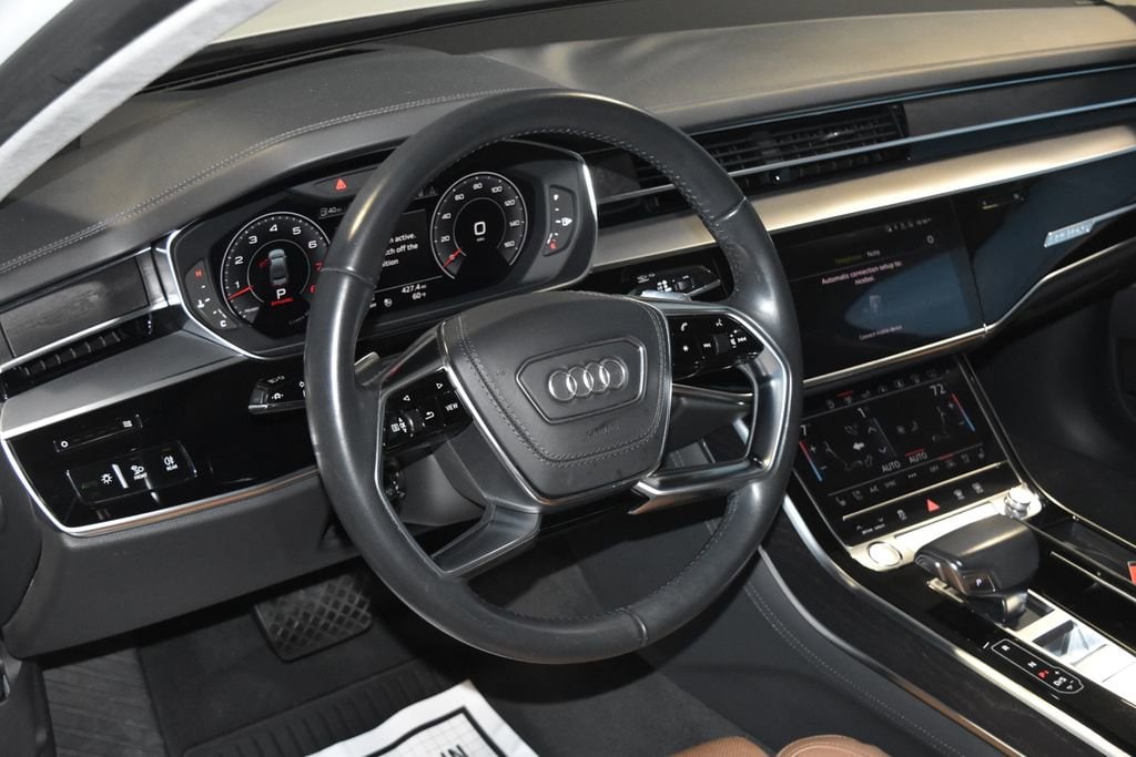 2019 Audi A8 L 55 quattro We want you to shop confidently for your next used car at D-Patrick Motoplex on Green River Road. Buy this used vehicle 100% online or in-store. This pre-owned vehicle was put through an extensive inspection before hitting our lot. Because of this, we are able to offer a 3-month/3,000-mile comprehensive limited warranty. You also get our Love It or Return It 5-day, 300-mile Exchange Policy. See our website for more details on both. We also offer extended warranties, additional protection plans, and offer a free to you CarFax vehicle history report. *Prices listed do not include a $250 documentation fee, applicable tax, title, tags, license, or $195 service and preparation. All pricing, vehicle information, and features (such as accessories and color) are believed to be accurate, but we do not warrant or guarantee such accuracy. The prices shown above may vary from region to region, and incentives are subject to change. Some offers listed may not be available to all customers. All online sale commitments are subject to confirmation of continued availability of vehicle. Once availability is confirmed, online sale agreement becomes binding upon the parties. If any information found on the website is thought to be erroneous, please verify information with a customer service representative. See dealer for full details. Looking to sell your current vehicle? We are Evansvilleâs KBB Instant Cash Offer Buying Center. Nutmeg Brown w/Valcona Leather Seat Upholstery, Adaptive Windshield Wiping System, Aluminum Optic Buttons, Ambient Interior Lighting Plus Package, Audi Active Lane Assist, Audi Adaptive Cruise Assist, Cold Weather Package, Driver Assistance Package, Extended Leather Package, HD Matrix-Design LED Headlights, Heated Front Surfaces, Heated Rear Outboard Seats, Intersection Assist, Ionizer & Fragrance Premium Air Quality, Light Alcantara Headliner, Lighting Package, Luxury Package, OLED Taillights w/Animation, Traffic Sign Recognition, Valcona Leather Seat Upholstery, 17 Speakers, 4-Wheel Disc Brakes, ABS brakes, Adaptive suspension, Air Conditioning, Alloy wheels, AM/FM radio: SiriusXM, Audi smartphone interface (Apple CarPlay/Android Auto), Auto High-beam Headlights, Auto tilt-away steering wheel, Auto-dimming door mirrors, Auto-dimming Rear-View mirror, Auto-leveling suspension, Automatic temperature control, Bang & Olufsen 3D Premium Sound System, Brake assist, Bumpers: body-color, Compass, Delay-off headlights, Door auto-latch, Driver door bin, Driver vanity mirror, Dual front impact airbags, Dual front side impact airbags, Electronic Stability Control, Emergency communication system: Audi connect CARE, Exterior Parking Camera Rear, Four wheel independent suspension, Front anti-roll bar, Front Bucket Seats, Front Center Armrest w/Storage, Front dual zone A/C, Front fog lights, Front reading lights, Garage door transmitter: HomeLink, Genuine wood console insert, Head restraints memory, Headlight cleaning, Heated door mirrors, Heated Front Seats, Heated front seats, HVAC memory, Illuminated entry, Knee airbag, Leather Shift Knob, Leather steering wheel, Low tire pressure warning, Memory seat, Navigation System, Occupant sensing airbag, Outside temperature display, Overhead airbag, Overhead console, Panic alarm, Passenger door bin, Passenger vanity mirror, Power 2nd-Row Moonroof, Power adjustable front head restraints, Power door mirrors, Power driver seat, Power moonroof, Power passenger seat, Power steering, Power windows, Radio data system, Radio: Audi MMI Navigation Plus, Rain sensing wipers, Rear air conditioning, Rear anti-roll bar, Rear dual zone A/C, Rear fog lights, Rear reading lights, Rear seat center armrest, Rear side impact airbag, Rear Window Blind, Rear window defroster, Remote keyless entry, Seatbelt memory, Security system, Speed control, Speed-sensing steering, Speed-Sensitive Wipers, Steering wheel memory, Steering wheel mounted audio controls, Tachometer, Telescoping steering