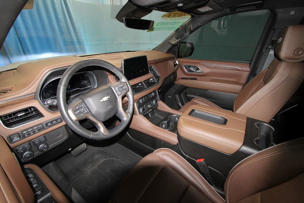 2023 Chevrolet Tahoe High Country We want you to shop confidently for your next used car at The BIG Ford Store, D-Patrick Ford. We are located on Highway 41 and Walnut in Evansville, right next to the Lloyd Expressway. Buy this used vehicle 100% online or in-store. This pre-owned vehicle was put through an extensive inspection before hitting our lot. Because of this, we are able to offer a 3-month/3,000-mile comprehensive limited warranty. You also get our Love It or Return It 5-day, 300-mile Exchange Policy. See our website for more details on both. We also offer extended service plans, vehicle protection plans, and offer a free to you CarFax vehicle history report. *Prices listed do not include a $250 documentation fee, applicable tax, title, tags, license, or $195 service and preparation. All pricing, vehicle information, and features (such as accessories and color) are believed to be accurate, but we do not warrant or guarantee such accuracy. The prices shown above may vary from region to region, and incentives are subject to change. Some offers listed may not be available to all customers. All online sale commitments are subject to confirmation of continued availability of vehicle. Once availability is confirmed, online sale agreement becomes binding upon the parties. If any information found on the website is thought to be erroneous, please verify information with a customer service representative. See dealer for full details. Looking to sell your current vehicle? We buy cars for cash. Every test drive at D-Patrick Ford in Evansville earns $10 to a local charity. Schedule your test drive today! 4WD, Jet Black/Mocha Leather, 10 Speakers, 15" Diagonal Multi-Color Head-Up Display, 1st & 2nd Row Color-Keyed Carpeted Floor Mats, 1st, 2nd & 3rd Rows All-Weather Floor Liners (LPO), 2-Speed Active Electronic AutoTrac Transfer Case, 3.23 Rear Axle Ratio, 3rd Row 60/40 Power-Folding Split-Bench Seat, 3rd row seats: split-bench, 4-Wheel Disc Brakes, ABS brakes, Adaptive Cruise Control, Adaptive suspension, Air Conditioning, Alloy wheels, AM/FM radio: SiriusXM with 360L, Apple CarPlay/Android Auto, Auto High-beam Headlights, Auto-dimming door mirrors, Auto-dimming Rear-View mirror, Auto-leveling suspension, Automatic temperature control, Bose 10-Speaker Centerpoint Surround Audio Sys Ft, Brake assist, Bright Front & Rear Door Sill Plates, Bumpers: body-color, Chrome Door Handles w/Body-Color Strip, Color-Keyed Carpeting Floor Covering, Compass, Delay-off headlights, Driver & Front Outboard Passenger Airbags, Driver door bin, Driver vanity mirror, Dual Exhaust System, Dual front impact airbags, Dual front side impact airbags, Dual-Pane Power Panoramic Sunroof, Electronic Stability Control, Emergency communication system: OnStar and Chevrolet connected services capable, Enhanced Automatic Emergency Braking, Enhanced Driver Information Center, Exterior Parking Camera Rear, Floor Console, Four wheel independent suspension, Front anti-roll bar, Front Bucket Seats, Front Center Armrest, Front dual zone A/C, Front High-Back Reclining Bucket Seats, Front reading lights, Fully automatic headlights, Garage door transmitter, Hands-Free Rear Power Programmable Liftgate, HD Surround Vision, Heads-Up Display, Heated & Ventilated Driver & Front Passenger Seats, Heated 2nd Row Outboard Seats, Heated door mirrors, Heated Driver & Front Passenger Seats, Heated front seats, Heated rear seats, Heated Steering Wheel, Heated steering wheel, Hill Descent Control, Illuminated entry, Infotainment Display, Inside Rearview Auto-Dimming Rear Camera Mirror, Lane Change Alert w/Side Blind Zone Alert, LED Daytime Running Lamps, License Plate Front Mounting Package, Low tire pressure warning, Magnetic Ride Control Suspension, Memory seat, Memory Settings, Navigation System, Not Equipped w/Wheel Locks (LPO), Occupant sensing airbag, Outside Heated Power-Adjustable Mirrors, Outside temperature display, Overhead airbag, Overhead console, Panic alarm, Passenger door b