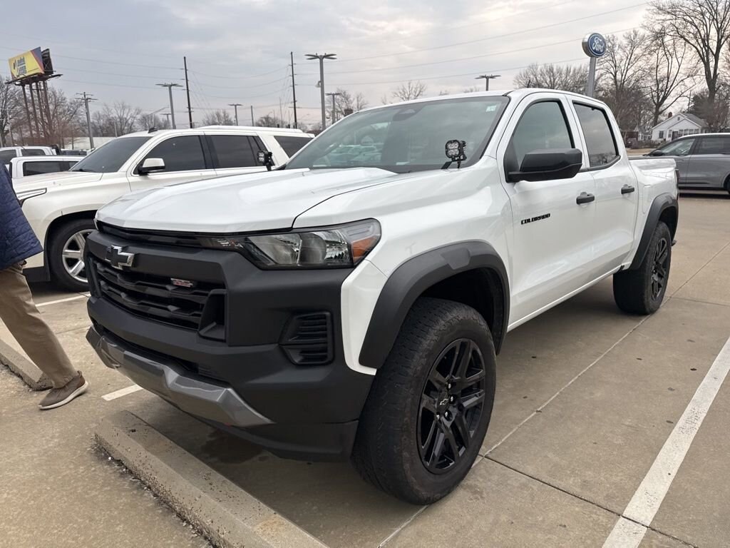 2024 Chevrolet Colorado Trail Boss Recent Arrival! We want you to shop confidently for your next used car at The BIG Ford Store, D-Patrick Ford. We are located on Highway 41 and Walnut in Evansville, right next to the Lloyd Expressway. Buy this used vehicle 100% online or in-store. This pre-owned vehicle was put through an extensive inspection before hitting our lot. Because of this, we are able to offer a 3-month/3,000-mile comprehensive limited warranty. You also get our Love It or Return It 5-day, 300-mile Exchange Policy. See our website for more details on both. We also offer extended service plans, vehicle protection plans, and offer a free to you CarFax vehicle history report. *Prices listed do not include a $250 documentation fee, applicable tax, title, tags, license, or $195 service and preparation. All pricing, vehicle information, and features (such as accessories and color) are believed to be accurate, but we do not warrant or guarantee such accuracy. The prices shown above may vary from region to region, and incentives are subject to change. Some offers listed may not be available to all customers. All online sale commitments are subject to confirmation of continued availability of vehicle. Once availability is confirmed, online sale agreement becomes binding upon the parties. If any information found on the website is thought to be erroneous, please verify information with a customer service representative. See dealer for full details. Looking to sell your current vehicle? We buy cars for cash. Every test drive at D-Patrick Ford in Evansville earns $10 to a local charity. Schedule your test drive today! 4WD, 220 Amp Generator, 3.42 Rear Axle Ratio, 4-Way Manual Passenger Seat Adjuster, 4-Wheel Disc Brakes, 6 Speakers, 6-Speaker Audio System Feature, 6-Way Manual Driver Seat Adjuster, 8-Way Power Driver Seat Adjuster, ABS brakes, Advanced Trailering Package, Air Conditioning, Alloy wheels, AM/FM radio: SiriusXM, Apple CarPlay/Android Auto, Auto High-beam Headlights, Automatic Emergency Braking, Black Nameplates (LPO), Black Tailgate Lettering (LPO), Brake assist, Chevy Safety Assist, Cloth Seat Trim, Compass, Delay-off headlights, Driver door bin, Driver vanity mirror, Dual front impact airbags, Dual front side impact airbags, Electronic Automatic Cruise Control, Electronic Stability Control, EZ-Lift & Lower Tailgate, Following Distance Indicator, Forward Collision Alert, Front anti-roll bar, Front Bucket Seats, Front Center Armrest, Front License Plate Kit, Front Pedestrian & Bicyclist Braking, Front wheel independent suspension, Heavy-Duty Trailering Package, Illuminated entry, Integrated Trailer Brake Controller, IntelliBeam Automatic High Beam On/Off, Lane Keep Assist w/Lane Departure Warning, Low tire pressure warning, Manual Rear-Sliding Window, Navigation System, Occupant sensing airbag, Outside temperature display, Overhead airbag, Overhead console, Panic alarm, Passenger door bin, Passenger vanity mirror, Power door mirrors, Power Driver Lumbar Control Seat Adjuster, Power steering, Power windows, Preferred Equipment Group 0TR, Radio data system, Radio: 11.3" Diagonal Advanced Color LCD Display, Rear reading lights, Rear step bumper, Rear-Window Electric Defogger, Red Recovery Hooks (LPO), Remote keyless entry, Remote Start Kit w/2 Key Fobs (LPO), Security system, SiriusXM Radio, Speed-sensing steering, Split folding rear seat, Steering Wheel Mounted Audio Controls, Steering wheel mounted audio controls, StowFlex Tailgate Storage Compartment, Tachometer, Tailgate Keyed Cylinder Lock, Tilt steering wheel, Traction control, Trail Boss Convenience Package, Trail Boss Convenience Package II, Trailering App, Trip computer, Variably intermittent wipers, Wheels: 18" x 8.5" Black High Gloss Aluminum, Wheels: 20" x 9" High Gloss Black Aluminum, Wireless Phone Projection, 4WD. CARFAX One-Owner. Clean CARFAX. 4D Crew Cab Trail Boss 8-Speed Automatic 2.7L I4 Turbocharged DOHC 16V LEV3-ULEV50 310hp 4WD Summit White CA