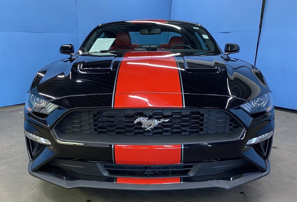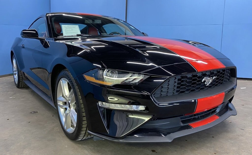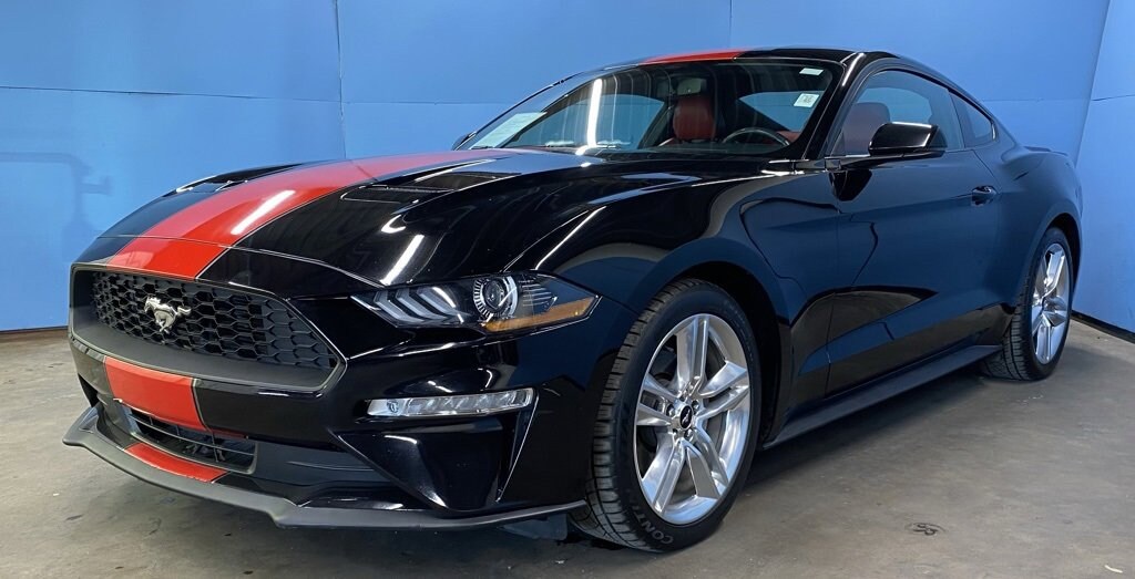 2020 Ford Mustang EcoBoost Premium We want you to shop confidently for your next used car at D-Patrick Lebanon Ford and We make it EASY! Buy this used vehicle 100% online or in-store, EASY. Saving time at the dealership, EASY! Financing, EASY! Get pre-approved online or in-store with one of our many lenders, EASY. Finding the car you love at the price you want, EASY! This pre-owned vehicle was put through an extensive inspection before hitting our lot. Because of this, we are able to offer a 3-month/3,000-mile comprehensive limited warranty. You also get our Love It or Return It 5-day, 300-mile Exchange Policy. See our website for more details on both. We also offer extended service plans, vehicle protection plans, and offer a free to you CarFax vehicle history report. *Prices listed do not include a $250 documentation fee, applicable tax, title, tags, license, or $195 service and preparation. All pricing, vehicle information, and features (such as accessories and color) are believed to be accurate, but we do not warrant or guarantee such accuracy. The prices shown above may vary from region to region, and incentives are subject to change. Some offers listed may not be available to all customers. All online sale commitments are subject to confirmation of continued availability of vehicle. Once availability is confirmed, online sale agreement becomes binding upon the parties. If any information found on the website is thought to be erroneous, please verify information with a customer service representative. See dealer for full details. Looking to sell your current vehicle? We buy cars for cash. 19" x 8.5" Polished Aluminum Wheels, 4-Wheel Disc Brakes, ABS brakes, Active Anti-Theft System, Active Valve Performance Exhaust, Air Conditioning, Alloy wheels, AM/FM Stereo, Auto-dimming Rear-View mirror, Brake assist, Bumpers: body-color, Compass, Delay-off headlights, Driver door bin, Driver vanity mirror, Dual front impact airbags, Dual front side impact airbags, Electronic Stability Control, Emergency communication system: 911 Assist, Enhanced Security Package, Exterior Parking Camera Rear, Four wheel independent suspension, Front anti-roll bar, Front Bucket Seats, Front Center Armrest, Front reading lights, Fully automatic headlights, Illuminated entry, Knee airbag, Leather Shift Knob, Low tire pressure warning, Occupant sensing airbag, Outside temperature display, Overhead airbag, Overhead console, Panic alarm, Passenger door bin, Passenger vanity mirror, Power door mirrors, Power steering, Power windows, Radio data system, Rear anti-roll bar, Rear window defroster, Remote keyless entry, Security system, SiriusXM Radio, Speed control, Speed-sensing steering, Speed-Sensitive Wipers, Split folding rear seat, Steering wheel mounted audio controls, SYNC 3 Communications & Entertainment System, Tachometer, Telescoping steering wheel, Tilt steering wheel, Traction control, Trip computer, Variably intermittent wipers, Voice-Activated Touch-Screen Navigation System, Voltmeter, Wheels: 18" x 8" Machined-Face Aluminum. 2D Coupe EcoBoost Premium 10-Speed Automatic 2.3L High Performance EcoBoost RWD Shadow Black CALL US TODAY BEFORE THIS ONE GETS AWAY-- (765) 204-6248 or shop online at www.dpatricklebanonford.com.