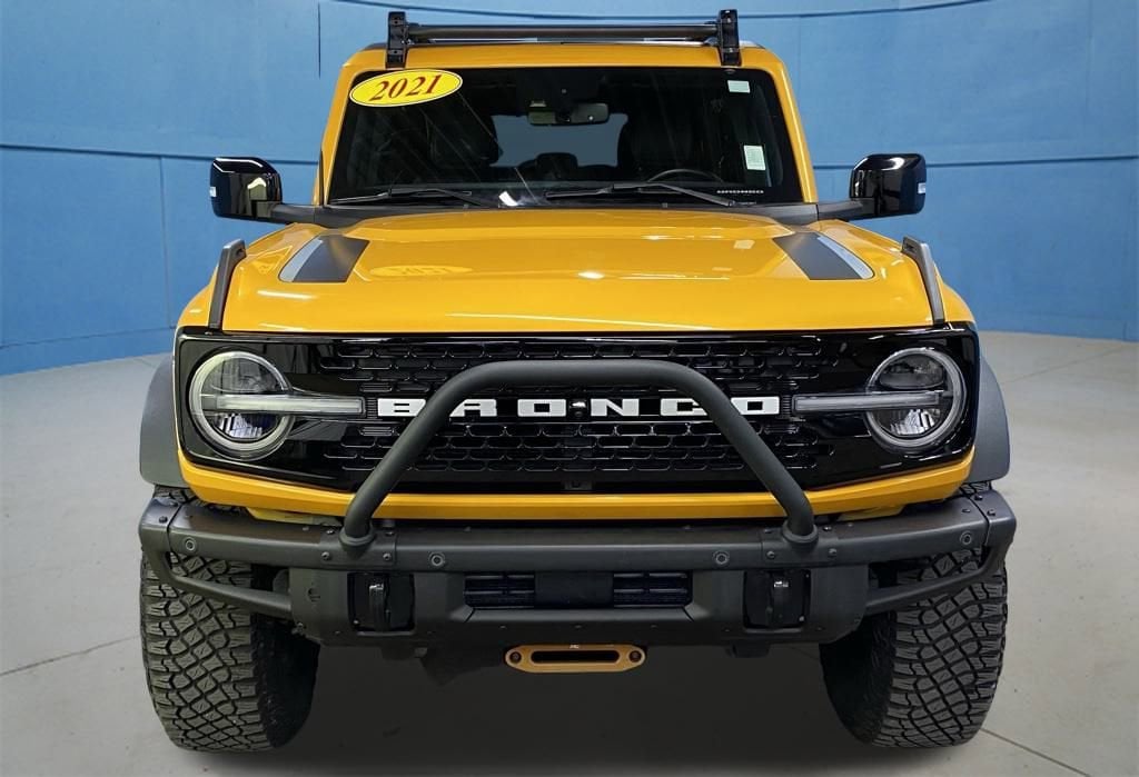 2021 Ford Bronco First Edition 10 Speakers, 4-Wheel Disc Brakes, 4.7 Axle Ratio, ABS brakes, Air Conditioning, Alloy wheels, AM/FM radio: SiriusXM with 360L, Auto High-beam Headlights, Auto-dimming Rear-View mirror, Automatic temperature control, Brake assist, Compass, Connected Built-In Navigation, Convertible HardTop, Delay-off headlights, Driver door bin, Driver vanity mirror, Dual front impact airbags, Dual front side impact airbags, Electronic Stability Control, Emergency communication system: 911 Assist, Equipment Group 954A Lux Package, Front anti-roll bar, Front Bucket Seats, Front Center Armrest, Front dual zone A/C, Front reading lights, Front wheel independent suspension, Fully automatic headlights, Glass rear window, Heated door mirrors, Heated front seats, Heated Leather-Trimmed/Vinyl Bucket Seats, Heated steering wheel, Illuminated entry, Integrated roll-over protection, Leather Shift Knob, Low tire pressure warning, Navigation system: Connected Navigation, Occupant sensing airbag, Outside temperature display, Overhead airbag, Overhead console, Panic alarm, Passenger door bin, Passenger vanity mirror, Power door mirrors, Power driver seat, Power passenger seat, Power steering, Power windows, Radio data system, Radio: B&O Sound System by Bang & Olufsen, Rear seat center armrest, Rear window defroster, Rear window wiper, Remote keyless entry, Security system, SiriusXM Radio w/360L, Speed control, Split folding rear seat, Steering wheel mounted audio controls, SYNC 4, Tachometer, Telescoping steering wheel, Tilt steering wheel, Traction control, Trip computer, Turn signal indicator mirrors, Variably intermittent wipers, Voltmeter, Wheels: 17" Black High Gloss-Painted Aluminum. 4D Sport Utility First Edition 10-Speed Automatic 2.7L EcoBoost V6 4WD Orange Metallic CALL US TODAY BEFORE THIS ONE GETS AWAY-- (765) 204-6248 or shop online at www.dpatricklebanonford.com.
