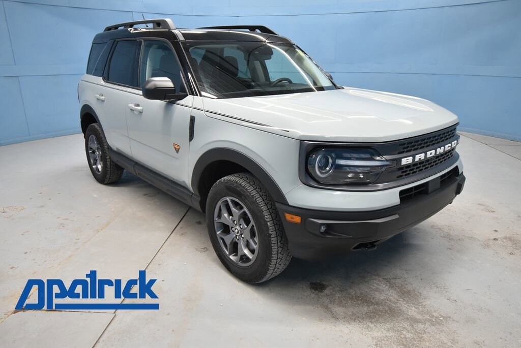 2024 Ford Bronco Sport Badlands We want you to shop confidently for your next used car at D-Patrick Boonville Ford and We make it EASY! Buy this used vehicle 100% online or in-store, EASY. Saving time at the dealership, EASY! Financing, EASY! Get pre-approved online or in-store with one of our many lenders, EASY. Finding the car you love at the price you want, EASY! This pre-owned vehicle was put through an extensive inspection before hitting our lot. Because of this, we are able to offer a 3-month/3,000-mile comprehensive limited warranty. You also get our Love It or Return It 5-day, 300-mile Exchange Policy. See our website for more details on both. We also offer extended service plans, vehicle protection plans, and offer a free to you CarFax vehicle history report. *Prices listed do not include a $250 documentation fee, applicable tax, title, tags, license, or $195 service and preparation. All pricing, vehicle information, and features (such as accessories and color) are believed to be accurate, but we do not warrant or guarantee such accuracy. The prices shown above may vary from region to region, and incentives are subject to change. Some offers listed may not be available to all customers. All online sale commitments are subject to confirmation of continued availability of vehicle. Once availability is confirmed, online sale agreement becomes binding upon the parties. If any information found on the website is thought to be erroneous, please verify information with a customer service representative. See dealer for full details. Looking to sell your current vehicle? We buy cars for cash. 3.80 Axle Ratio, 4-Wheel Disc Brakes, 6 Speakers, ABS brakes, Air Conditioning, Alloy wheels, AM/FM radio: SiriusXM, AM/FM Stereo, Auto High-beam Headlights, Auto-Dimming Rear-View Mirror, Automatic temperature control, Body-Colored Door Handles, Brake assist, Compass, Delay-off headlights, Driver door bin, Driver vanity mirror, Dual front impact airbags, Dual front side impact airbags, Dual-Zone Electronic Automatic Temperature Control, Electronic Stability Control, Emergency communication system: SYNC 3 911 Assist, Equipment Group 400A, Evasive Steering Assist, Ford Co-Pilot360 Assist+, Four wheel independent suspension, Front anti-roll bar, Front Bucket Seats, Front Center Armrest, Front fog lights, Front reading lights, Fully automatic headlights, HD Radio, Heated door mirrors, Heated Steering Wheel, Illuminated entry, Intelligent Adaptive Cruise Control w/Stop & Go, Knee airbag, Leather-Trimmed 2-Tone Heated Front Bucket Seats, Low tire pressure warning, Memory Driver's Seat & Sideview Mirror, Occupant sensing airbag, Outside temperature display, Overhead airbag, Overhead console, Panic alarm, Passenger door bin, Passenger vanity mirror, Power door mirrors, Power driver seat, Power Moonroof, Power steering, Power windows, Premium Package, Radio data system, Rear anti-roll bar, Rear Parking Sensors, Rear reading lights, Rear seat center armrest, Rear window defroster, Rear window wiper, Remote keyless entry, Remote Start System, Security system, SiriusXM, Speed control, Speed-sensing steering, Speed-Sensitive Wipers, Split folding rear seat, Steering wheel mounted audio controls, SYNC 3 Communications & Entertainment System, Tachometer, Telescoping steering wheel, Tilt steering wheel, Traction control, Trip computer, Unique Style Cloth Sport Contour Bucket Seats, Universal Garage Door Opener (UGDO), Variably intermittent wipers, Voice-Activated Touchscreen Navigation System, Wheels: 17" Carbonized Gray-Painted Aluminum, Wireless Charging Pad. CARFAX One-Owner. 4D Sport Utility Badlands 8-Speed Automatic EcoBoost 2.0L I4 GTDi DOHC Turbocharged VCT 4WD Cactus Gray CALL US TODAY BEFORE THIS ONE GETS AWAY-- (812) 897-5838 or shop online at www.boonvilleford.com.