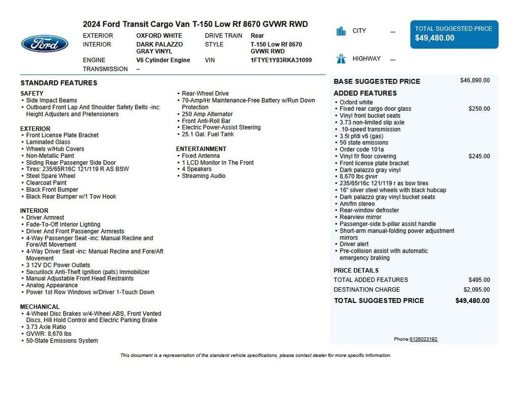 2024 Ford Transit-150 Cargo Base V-6 cyl Van Low Roof Van