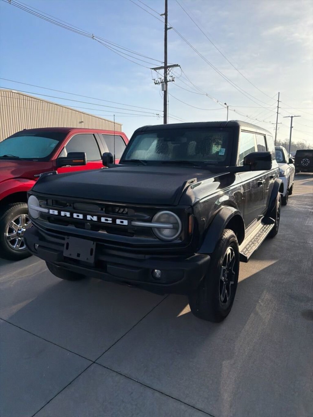 2025 Ford Bronco Outer Banks Recent Arrival! We want you to shop confidently for your next used car at The BIG Ford Store, D-Patrick Ford. We are located on Highway 41 and Walnut in Evansville, right next to the Lloyd Expressway. Buy this used vehicle 100% online or in-store. This pre-owned vehicle was put through an extensive inspection before hitting our lot. Because of this, we are able to offer a 3-month/3,000-mile comprehensive limited warranty. You also get our Love It or Return It 5-day, 300-mile Exchange Policy. See our website for more details on both. We also offer extended service plans, vehicle protection plans, and offer a CarFax vehicle history report. *Prices listed do not include a $250 documentation fee, applicable tax, title, tags, license, or $195 service and preparation. All pricing, vehicle information, and features (such as accessories and color) are believed to be accurate, but we do not warrant or guarantee such accuracy. The prices shown above may vary from region to region, and incentives are subject to change. Some offers listed may not be available to all customers. All online sale commitments are subject to confirmation of continued availability of vehicle. Once availability is confirmed, online sale agreement becomes binding upon the parties. If any information found on the website is thought to be erroneous, please verify information with a customer service representative. See dealer for full details. Looking to sell your current vehicle? We buy cars for cash. Every test drive at D-Patrick Ford in Evansville earns $10 to a local charity. Schedule your test drive today! 18" Bright Machined Aluminum Wheels, 3.73 Axle Ratio, 4-Wheel Disc Brakes, 7 Speakers, ABS brakes, Air Conditioning, Alloy wheels, AM/FM radio: SiriusXM with 360L, AM/FM Stereo, Auto High-beam Headlights, Auto-dimming Rear-View mirror, Automatic temperature control, Brake assist, Compass, Connected Navigation, Delay-off headlights, Driver door bin, Driver vanity mirror, Dual front impact airbags, Dual front side impact airbags, Electronic Stability Control, Emergency communication system: 911 Assist, Equipment Group 312A Mid Package, Exterior Parking Camera Rear, Front anti-roll bar, Front Bucket Seats, Front Center Armrest, Front dual zone A/C, Front fog lights, Front License Plate Bracket, Front reading lights, Front wheel independent suspension, Fully automatic headlights, Heated door mirrors, Heated front seats, Heated Leather-Trimmed/Vinyl Bucket Seats, Heated steering wheel, Illuminated entry, Integrated roll-over protection, Internet access capable: FordPass Connect, Leather Shift Knob, Low tire pressure warning, Navigation system: Connected Navigation, Occupant sensing airbag, Outside temperature display, Overhead airbag, Overhead console, Panic alarm, Passenger door bin, Passenger vanity mirror, Power door mirrors, Power driver seat, Power passenger seat, Power steering, Power windows, Radio data system, Rear seat center armrest, Remote keyless entry, Security system, Shadow Black-Painted Hard Top, SiriusXM w/360L, Speed control, Split folding rear seat, Steering wheel mounted audio controls, SYNC 4, Tachometer, Telescoping steering wheel, Tilt steering wheel, Traction control, Trip computer, Variably intermittent wipers, Voltmeter. CARFAX One-Owner. 4D Sport Utility Outer Banks 10-Speed Automatic 2.3L EcoBoost I-4 4WD Shadow Black CALL TODAY (812) 625-4823 OR SHOP ONLINE AT WWW.DPATRICKFORD.COM.