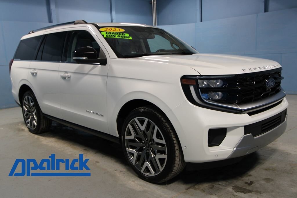 2025 Ford Expedition Platinum Recent Arrival! We want you to shop confidently for your next used car at The BIG Ford Store, D-Patrick Ford. We are located on Highway 41 and Walnut in Evansville, right next to the Lloyd Expressway. Buy this used vehicle 100% online or in-store. This pre-owned vehicle was put through an extensive inspection before hitting our lot. Because of this, we are able to offer a 3-month/3,000-mile comprehensive limited warranty. You also get our Love It or Return It 5-day, 300-mile Exchange Policy. See our website for more details on both. We also offer extended service plans, vehicle protection plans, and offer a CarFax vehicle history report. *Prices listed do not include a $250 documentation fee, applicable tax, title, tags, license, or $195 service and preparation. All pricing, vehicle information, and features (such as accessories and color) are believed to be accurate, but we do not warrant or guarantee such accuracy. The prices shown above may vary from region to region, and incentives are subject to change. Some offers listed may not be available to all customers. All online sale commitments are subject to confirmation of continued availability of vehicle. Once availability is confirmed, online sale agreement becomes binding upon the parties. If any information found on the website is thought to be erroneous, please verify information with a customer service representative. See dealer for full details. Looking to sell your current vehicle? We buy cars for cash. Every test drive at D-Patrick Ford in Evansville earns $10 to a local charity. Schedule your test drive today! 4WD, 10 Speakers, 2nd Row Power-Folding Captain's Chairs, 3.73 Axle Ratio, 3rd row seats: split-bench, 4-Wheel Disc Brakes, ABS brakes, Adjustable pedals, Air Conditioning, Alloy wheels, AM/FM radio: SiriusXM with 360L, Apple CarPlay/Android Auto, Auto High-beam Headlights, Auto-dimming door mirrors, Auto-dimming Rear-View mirror, Automatic temperature control, Black Headlamp Bezel w/Satin Trim Applique, BlueCruise Equipped (1-Year Plan), Brake assist, Bumpers: body-color, Carbon Black Front Bumper w/Lit Grille Bar, Compass, Connectivity Package (One-Time Purchase), Continuous Control Damping Suspension, Delay-off headlights, Driver door bin, Driver vanity mirror, Driver's Package, Dual front impact airbags, Dual front side impact airbags, Electronic Stability Control, Emergency communication system: 911 Assist, Engine Sound Enhancer, Equipment Group 600A Standard Package, Exterior Parking Camera Rear, Floor Liners, Front & Second Rows (Tray Style), Four wheel independent suspension, Front anti-roll bar, Front Bucket Seats, Front Center Armrest, Front Door Scuff Plates w/Met Insert & Bright Rear, Front dual zone A/C, Front reading lights, Fully automatic headlights, Garage door transmitter, Genuine wood dashboard insert, Genuine wood door panel insert, Heated & Ventilated Leather Front Captain's Chairs, Heated door mirrors, Heated front seats, Heated rear seats, Heated steering wheel, High Flow Exhaust System, Illuminated entry, Leather steering wheel, Low tire pressure warning, Memory seat, Multicontour Active Motion Lthr Frnt Captains Chairs, Navigation System, Occupant sensing airbag, Outside temperature display, Overhead airbag, Overhead console, Panic alarm, Passenger door bin, Passenger vanity mirror, Pedal memory, Platinum Ultimate Interior Package, Platinum Ultimate Package, Polished Stainless Steel Beltline Molding, Power door mirrors, Power driver seat, Power moonroof: Vista Roof, Power passenger seat, Power steering, Power windows, Radio data system, Radio: B&O Sound System by Bang & Olufsen, Radio: B&O Unleashed Sound System by Bang & Olufsen, Rain sensing wipers, Rear air conditioning, Rear anti-roll bar, Rear reading lights, Rear Seat Radio Controls, Rear Side Windows Laminated Glass, Rear window defroster, Rear window wiper, Reclining 3rd row seat, Remote keyless entry, Satin Aluminum Expedition Lettering On Side &