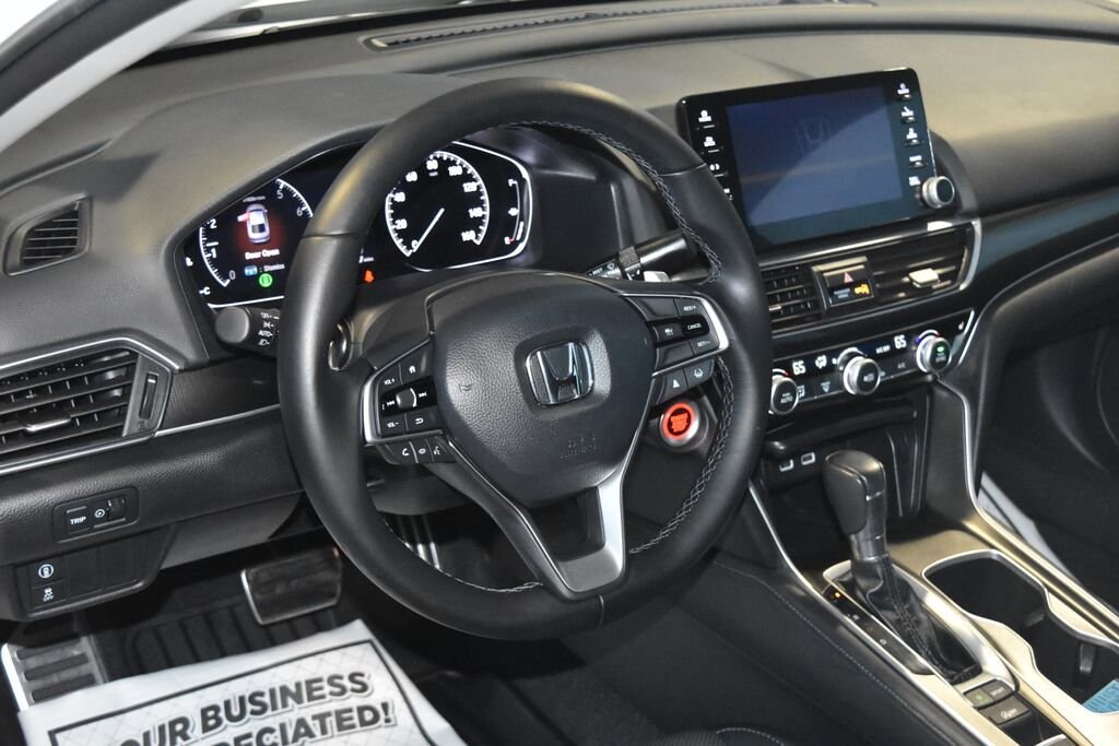 2022 Honda Accord Sport Special Edition Recent Arrival! **Prices listed do not include a $250 documentation fee, applicable tax, title, tags, license, or $195 service and preparation. All pricing, vehicle information, and features (such as accessories and color) are believed to be accurate, but we do not warrant or guarantee such accuracy. The prices shown above may vary from region to region, and incentives are subject to change. Some offers listed may not be available to all customers. All online sale commitments are subject to confirmation of continued availability of vehicle. Once availability is confirmed, online sale agreement becomes binding upon the parties. If any information found on the website is thought to be erroneous, please verify information with a customer service representative. See dealer for full details. Black Leather, 4-Wheel Disc Brakes, 8 Speakers, ABS brakes, Adaptive Cruise Control: Adaptive Cruise Control (ACC) with Low-Speed Follow, Air Conditioning, Alloy wheels, AM/FM radio, Apple CarPlay/Android Auto, Auto High-beam Headlights, Automatic temperature control, Brake assist, Bumpers: body-color, Delay-off headlights, Driver door bin, Driver vanity mirror, Dual front impact airbags, Dual front side impact airbags, Electronic Stability Control, Emergency communication system: HondaLink, Exterior Parking Camera Rear, Forward collision: Collision Mitigation Braking System (CMBS) + FCW mitigation, Four wheel independent suspension, Front anti-roll bar, Front Bucket Seats, Front Center Armrest, Front dual zone A/C, Front fog lights, Front reading lights, Fully automatic headlights, Heated door mirrors, Heated Front Bucket Seats, Heated front seats, Illuminated entry, Knee airbag, Lane Departure Warning System, Leather Shift Knob, Leather steering wheel, Low tire pressure warning, Occupant sensing airbag, Outside temperature display, Overhead airbag, Overhead console, Panic alarm, Passenger door bin, Passenger vanity mirror, Perforated Leather Seat Trim, Power door mirrors, Power driver seat, Power passenger seat, Power steering, Power windows, Radio data system, Radio: 180-Watt AM/FM Audio System, Rear anti-roll bar, Rear seat center armrest, Rear window defroster, Remote keyless entry, Security system, Speed control, Speed-sensing steering, Speed-Sensitive Wipers, Split folding rear seat, Spoiler, Steering wheel mounted audio controls, Tachometer, Telescoping steering wheel, Tilt steering wheel, Traction control, Trip computer, Variably intermittent wipers, Wheels: 19" Machine-Finished Alloy w/Black Inserts, Black Leather. CARFAX One-Owner. 4D Sedan Sport Special Edition CVT 1.5T I4 DOHC 16V Turbocharged VTEC FWD White
