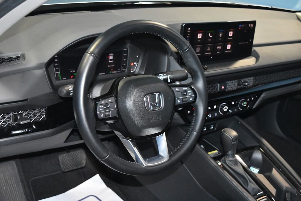 2024 Honda Accord Hybrid Touring We want you to shop confidently for your next used car at D-Patrick Honda where we are locally owned and community-driven. Buy this used vehicle 100% online or in-store. This pre-owned vehicle was put through an extensive inspection before hitting our lot. Because of this, we are able to offer a 3-month/3,000-mile comprehensive limited warranty. You also get our Love It or Return It 5-day, 300-mile Exchange Policy. See our website for more details on both. We also offer extended service plans, vehicle protection plans, and offer a free to you CarFax vehicle history report. *Prices listed do not include a $250 documentation fee, applicable tax, title, tags, license, or $195 service and preparation. All pricing, vehicle information, and features (such as accessories and color) are believed to be accurate, but we do not warrant or guarantee such accuracy. The prices shown above may vary from region to region, and incentives are subject to change. Some offers listed may not be available to all customers. All online sale commitments are subject to confirmation of continued availability of vehicle. Once availability is confirmed, online sale agreement becomes binding upon the parties. If any information found on the website is thought to be erroneous, please verify information with a customer service representative. See dealer for full details. Looking to sell your current vehicle? We buy cars for cash. Check out our D-Patrick Honda Helping Kids program, and nominate someone today. 2.0L 16V DOHC, 12 Speakers, 4-Wheel Disc Brakes, ABS brakes, Adaptive Cruise Control: Adaptive Cruise Control (ACC) with Low-Speed Follow, Adaptive suspension, Air Conditioning, Alloy wheels, AM/FM radio, Apple CarPlay/Android Auto, Auto High-beam Headlights, Auto-dimming Rear-View mirror, Automatic temperature control, Blind Spot Information (BSI) System warning, Bose Premium Sound System, Brake assist, Bumpers: body-color, Compass, Delay-off headlights, Driver door bin, Driver vanity mirror, Dual front impact airbags, Dual front side impact airbags, Electronic Stability Control, Emergency communication system: HondaLink, Exterior Parking Camera Rear, Four wheel independent suspension, Front anti-roll bar, Front Bucket Seats, Front Center Armrest, Front dual zone A/C, Front reading lights, Fully automatic headlights, Heads-Up Display, Heated & Ventilated Front Bucket Seats, Heated door mirrors, Heated front seats, Heated rear seats, Illuminated entry, Knee airbag, Lane departure: Lane Keeping Assist System (LKAS) active, Leather Shift Knob, Leather steering wheel, Leather-Trimmed Seat Trim, Low tire pressure warning, Memory seat, Navigation System, Occupant sensing airbag, Outside temperature display, Overhead airbag, Overhead console, Panic alarm, Passenger door bin, Passenger vanity mirror, Power door mirrors, Power driver seat, Power moonroof, Power passenger seat, Power steering, Power windows, Radio data system, Rain sensing wipers, Rear anti-roll bar, Rear reading lights, Rear seat center armrest, Rear side impact airbag, Rear window defroster, Remote keyless entry, Security system, Speed control, Speed-sensing steering, Speed-Sensitive Wipers, Split folding rear seat, Steering wheel mounted audio controls, Telescoping steering wheel, Tilt steering wheel, Traction control, Trip computer, Turn signal indicator mirrors, Variably intermittent wipers, Ventilated front seats, Wheels: 19" x 8.5J Berlina Black, 2.0L 16V DOHC. CARFAX One-Owner. Clean CARFAX. 4D Sedan Touring eCVT 2.0L 16V DOHC FWD Solar Silver Metallic (812) 477-6201 and shop online at www.dpathonda.com.