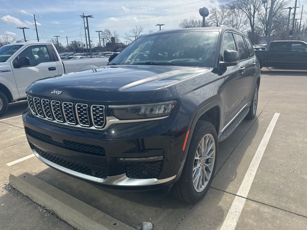 2022 Jeep Grand Cherokee L Summit Recent Arrival! We want you to shop confidently for your next used car at The BIG Ford Store, D-Patrick Ford. We are located on Highway 41 and Walnut in Evansville, right next to the Lloyd Expressway. Buy this used vehicle 100% online or in-store. This pre-owned vehicle was put through an extensive inspection before hitting our lot. Because of this, we are able to offer a 3-month/3,000-mile comprehensive limited warranty. You also get our Love It or Return It 5-day, 300-mile Exchange Policy. See our website for more details on both. We also offer extended service plans, vehicle protection plans, and offer a CarFax vehicle history report. *Prices listed do not include a $250 documentation fee, applicable tax, title, tags, license, or $195 service and preparation. All pricing, vehicle information, and features (such as accessories and color) are believed to be accurate, but we do not warrant or guarantee such accuracy. The prices shown above may vary from region to region, and incentives are subject to change. Some offers listed may not be available to all customers. All online sale commitments are subject to confirmation of continued availability of vehicle. Once availability is confirmed, online sale agreement becomes binding upon the parties. If any information found on the website is thought to be erroneous, please verify information with a customer service representative. See dealer for full details. Looking to sell your current vehicle? We buy cars for cash. Every test drive at D-Patrick Ford in Evansville earns $10 to a local charity. Schedule your test drive today! 10 Speakers, 2nd Row Manual Window Shades, 3.45 Rear Axle Ratio, 3rd row seats: split-bench, 4-Wheel Disc Brakes, ABS brakes, Active Noise Control System, Adaptive suspension, Advanced Protech Group IV, Air Conditioning, Alloy wheels, AM/FM radio: SiriusXM with 360L, Anti-whiplash front head restraints, Audio memory, Auto High-beam Headlights, Auto-dimming door mirrors, Auto-dimming Rear-View mirror, Auto-leveling suspension, Automatic temperature control, Brake assist, Bumpers: body-color, Compass, Conventional Differential Rear Axle, Delay-off headlights, Driver door bin, Driver vanity mirror, Dual front impact airbags, Dual front side impact airbags, Electronic Limited Slip Differential Delete, Electronic Stability Control, Emergency communication system, Four wheel independent suspension, Front anti-roll bar, Front Bucket Seats, Front Center Armrest w/Storage, Front dual zone A/C, Front fog lights, Front Passenger Interactive Display, Front reading lights, Fully automatic headlights, Garage door transmitter, Genuine wood dashboard insert, Genuine wood door panel insert, Heads-Up Display, Heated door mirrors, Heated front seats, Heated rear seats, Heated steering wheel, Illuminated entry, Interior Rear Facing Camera, Knee airbag, Leather steering wheel, Low tire pressure warning, Luxury Tech Group V, Memory seat, MOPAR Black Side Steps, Nappa Leather Seats, Navigation System, Night Vision/Pedestrian-Animal Detection, Normal Duty Suspension, Occupant sensing airbag, Outside temperature display, Overhead airbag, Overhead console, Panic alarm, Passenger door bin, Passenger vanity mirror, Power door mirrors, Power driver seat, Power Fold Seatbacks, Power Liftgate, Power moonroof, Power passenger seat, Power steering, Power windows, Quick Order Package 22S, Radio data system, Radio: Uconnect 5 Nav w/10.1" Display, Rain sensing wipers, Rear air conditioning, Rear anti-roll bar, Rear dual zone A/C, Rear reading lights, Rear seat center armrest, Rear window defroster, Rear window wiper, Rearview Autodim Digital Display Mirror, Reclining 3rd row seat, Remote keyless entry, Security system, Speed control, Speed-Sensitive Wipers, Split folding rear seat, Spoiler, Steering wheel memory, Steering wheel mounted audio controls, Tachometer, Telescoping steering wheel, Tilt steering wheel, Traction control, Trip computer, Turn signal indica