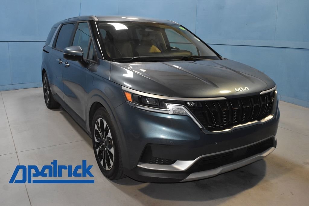 2024 Kia Carnival EX Buy this used vehicle 100% online or in-store. We want you to shop confidently for your next used car at D-Patrick #1 Used Cars on Green River Road. D-Patrick #1 Used Cars are put through an extensive inspection before hitting our lot. Because of this, we are able to offer a 3-month/3,000-mile comprehensive limited warranty. You also get our Love It or Return It 5-day, 300-mile Exchange Policy. See our website for more details on both. We also offer extended warranties, additional protection plans, and offer a free to you CarFax vehicle history report. We have a large selection of D-Patrick #1 Used Cars and AS-IS vehicles, all in one location with sale prices starting as low as $2500. We also have a large selection of certified, Audi, BMW, Mercedes-Benz, Porsche, Volkswagen, Ford, Lincoln, Honda, and Nissan. Looking to sell your current vehicle? We have partnered with Kelley Blue Book as Evansvilleâs Instant Cash Offer Buying Center. *Prices listed do not include a $250 documentation fee, applicable tax, title, tags, license, or $195 service and preparation. All pricing, vehicle information, and features (such as accessories and color) are believed to be accurate, but we do not warrant or guarantee such accuracy. The prices shown above may vary from region to region, and incentives are subject to change. Some offers listed may not be available to all customers. All online sale commitments are subject to confirmation of continued availability of vehicle. Once availability is confirmed, online sale agreement becomes binding upon the parties. If any information found on the website is thought to be erroneous, please verify information with a customer service representative. See dealer for full details. 10 Speakers, 3.51 Axle Ratio, 3rd row seats: split-bench, 4-Wheel Disc Brakes, ABS brakes, Air Conditioning, Alloy wheels, AM/FM radio: SiriusXM, Apple CarPlay & Android Auto, Artificial Leather Seat Trim, Auto High-beam Headlights, Automatic temperature control, Brake assist, Bumpers: body-color, Carpeted Floor Mats (8-Passenger), Compass, Delay-off headlights, Driver door bin, Driver vanity mirror, Dual front impact airbags, Dual front side impact airbags, Electronic Stability Control, Emergency communication system, Four wheel independent suspension, Front anti-roll bar, Front Bucket Seats, Front Center Armrest, Front dual zone A/C, Front reading lights, Fully automatic headlights, Heated door mirrors, Heated Front Bucket Seats, Heated front seats, Illuminated entry, Interior Light Kit, Knee airbag, Leather Shift Knob, Leather steering wheel, Low tire pressure warning, Navigation System, Occupant sensing airbag, Outside temperature display, Overhead airbag, Overhead console, Panic alarm, Passenger door bin, Passenger vanity mirror, Power door mirrors, Power driver seat, Power steering, Power windows, Radio: AM/FM/HD Audio System, Rear air conditioning, Rear anti-roll bar, Rear reading lights, Rear window defroster, Rear window wiper, Reclining 3rd row seat, Remote keyless entry, Security system, Speed control, Speed-sensing steering, Split folding rear seat, Spoiler, Steering wheel mounted audio controls, Tachometer, Telescoping steering wheel, Tilt steering wheel, Traction control, Trip computer, Turn signal indicator mirrors, Variably intermittent wipers, Wheels: 7.5J x 19" Machine-Finished Alloy. CARFAX One-Owner. Clean CARFAX. 4D Passenger Van EX 8-Speed Automatic V6 FWD Astra Blue CALL US TODAY 812-471-7791 and shop online at www.evansvilleusedcars.com.