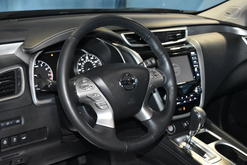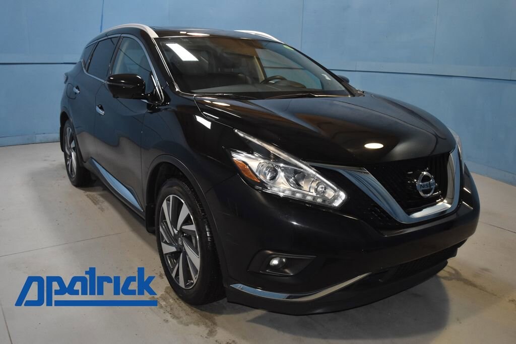 2018 Nissan Murano Platinum **Prices listed do not include a $250 documentation fee, applicable tax, title, tags, license, or $195 service and preparation. All pricing, vehicle information, and features (such as accessories and color) are believed to be accurate, but we do not warrant or guarantee such accuracy. The prices shown above may vary from region to region, and incentives are subject to change. Some offers listed may not be available to all customers. All online sale commitments are subject to confirmation of continued availability of vehicle. Once availability is confirmed, online sale agreement becomes binding upon the parties. If any information found on the website is thought to be erroneous, please verify information with a customer service representative. See dealer for full details. CVT with Xtronic, AWD, 11 Speakers, 4-Wheel Disc Brakes, 4.667 Axle Ratio, ABS brakes, Accessory Illuminated Kick Plates, Activation Disclaimer, Air Conditioning, Alloy wheels, AM/FM radio: SiriusXM, AM/FM/CD/MP3/WMA Audio System, Apple CarPlay/Android Auto, Auto tilt-away steering wheel, Auto-dimming Rear-View mirror, Automatic temperature control, Blind Spot Warning, Brake assist, Bumpers: body-color, Cargo Area Protector, Cargo Net, Cargo Package, Carpeted Floor Mats & Carpeted Cargo Mat, CD player, Child-Seat-Sensing Airbag, Climate-Controlled Front Bucket Seats, Compass, Delay-off headlights, Driver door bin, Driver vanity mirror, Dual front impact airbags, Dual front side impact airbags, Electronic Stability Control, Emergency communication system: NissanConnect Services, Exterior Accent Lighting, First Aid Kit, Four wheel independent suspension, Front anti-roll bar, Front Bucket Seats, Front Center Armrest, Front dual zone A/C, Front fog lights, Front reading lights, Fully automatic headlights, Garage door transmitter: HomeLink, Heated door mirrors, Heated front seats, Heated rear seats, Heated steering wheel, Illuminated entry, Illuminated Kick Plate, Interior Accent Lighting, Knee airbag, Leather Appointed Seat Trim, Low tire pressure warning, Memory seat, Navigation System, NissanConnect Services Powered By SiriusXM, Occupant sensing airbag, Outside temperature display, Overhead airbag, Overhead console, Panic alarm, Passenger door bin, Passenger vanity mirror, Power door mirrors, Power driver seat, Power Liftgate, Power moonroof, Power passenger seat, Power steering, Power windows, Radio data system, Rear anti-roll bar, Rear Bumper Protector, Rear reading lights, Rear seat center armrest, Rear window defroster, Rear window wiper, Remote keyless entry, Retractable Cargo Cover, Roof rack: rails only, Security system, Speed control, Speed-sensing steering, Speed-Sensitive Wipers, Splash Guards, Split folding rear seat, Spoiler, Steering wheel memory, Steering wheel mounted audio controls, Tachometer, Telescoping steering wheel, Tilt steering wheel, Traction control, Trip computer, Turn signal indicator mirrors, Variably intermittent wipers, Ventilated front seats, Wheels: 20" Machined Aluminum-Alloy, CVT with Xtronic, AWD. CARFAX One-Owner. Clean CARFAX. 4D Sport Utility Platinum CVT with Xtronic 3.5L V6 DOHC 24V AWD Magnetic Black Metallic (812) 477-6201 and shop online at www.dpathonda.com.