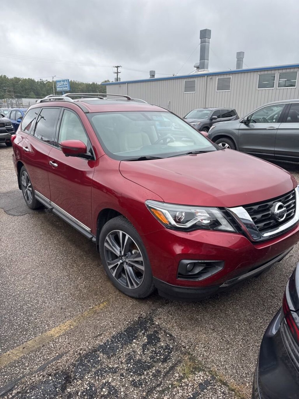 2020 Nissan Pathfinder Platinum Recent Arrival! We want you to shop confidently for your next used car at D-Patrick Honda where we are locally owned and community-driven. Buy this used vehicle 100% online or in-store. This pre-owned vehicle was put through an extensive inspection before hitting our lot. Because of this, we are able to offer a 3-month/3,000-mile comprehensive limited warranty. You also get our Love It or Return It 5-day, 300-mile Exchange Policy. See our website for more details on both. We also offer extended service plans, vehicle protection plans, and offer a free to you CarFax vehicle history report. *Prices listed do not include a $250 documentation fee, applicable tax, title, tags, license, or $195 service and preparation. All pricing, vehicle information, and features (such as accessories and color) are believed to be accurate, but we do not warrant or guarantee such accuracy. The prices shown above may vary from region to region, and incentives are subject to change. Some offers listed may not be available to all customers. All online sale commitments are subject to confirmation of continued availability of vehicle. Once availability is confirmed, online sale agreement becomes binding upon the parties. If any information found on the website is thought to be erroneous, please verify information with a customer service representative. See dealer for full details. Looking to sell your current vehicle? We buy cars for cash. Check out our D-Patrick Honda Helping Kids program, and nominate someone today. 4WD, 13 Speakers, 3rd row seats: bench, 4-Wheel Disc Brakes, 5.25 Axle Ratio, ABS brakes, Air Conditioning, Alloy wheels, AM/FM radio: SiriusXM, Auto tilt-away steering wheel, Auto-dimming Rear-View mirror, Automatic temperature control, Black Mold-in-Color Splash Guards, Blind Spot Warning, Bodyside moldings, Bose Premium Audio System, Brake assist, Bumpers: body-color, Cargo Package, Carpeted Floor Mats (4-pc Set), CD player, Climate Controlled Front Bucket Seats, Cross Bars, Delay-off headlights, Driver door bin, Driver vanity mirror, Dual front impact airbags, Dual front side impact airbags, Electronic Stability Control, Emergency communication system: NissanConnect Services, Exterior Parking Camera Rear, First Aid Kit, Four wheel independent suspension, Front anti-roll bar, Front Bucket Seats, Front Center Armrest, Front dual zone A/C, Front fog lights, Front reading lights, Fully automatic headlights, Garage door transmitter: HomeLink, Heated door mirrors, Heated front seats, Heated rear seats, Heated steering wheel, Illuminated entry, Leather Seating Surfaces, Leather Shift Knob, Leather steering wheel, Low tire pressure warning, Memory seat, Navigation System, NissanConnect w/Navigation & Services, Occupant sensing airbag, Outside temperature display, Overhead airbag, Overhead console, Panic alarm, Passenger door bin, Passenger vanity mirror, Power door mirrors, Power driver seat, Power Liftgate, Power moonroof, Power passenger seat, Power steering, Power windows, Radio data system, Radio: AM/FM/CD Audio System w/NissanConnect, Rear air conditioning, Rear anti-roll bar, Rear Bumper Protector, Rear Parking Sensors, Rear reading lights, Rear seat center armrest, Rear window defroster, Rear window wiper, Reclining 3rd row seat, Remote keyless entry, Security system, SiriusXM Traffic, Speed control, Speed-sensing steering, Speed-Sensitive Wipers, Split folding rear seat, Spoiler, Steering wheel memory, Steering wheel mounted audio controls, Tachometer, Telescoping steering wheel, Tilt steering wheel, Tonneau Cover, Traction control, Trip computer, Turn signal indicator mirrors, Variably intermittent wipers, Ventilated front seats, Wheels: 20" x 7.5 J Machined Aluminum-Alloy, 4WD. Clean CARFAX. 4D Sport Utility Platinum CVT with Xtronic V6 4WD Scarlet Ember Tintcoat (812) 477-6201 and shop online at www.dpathonda.com.