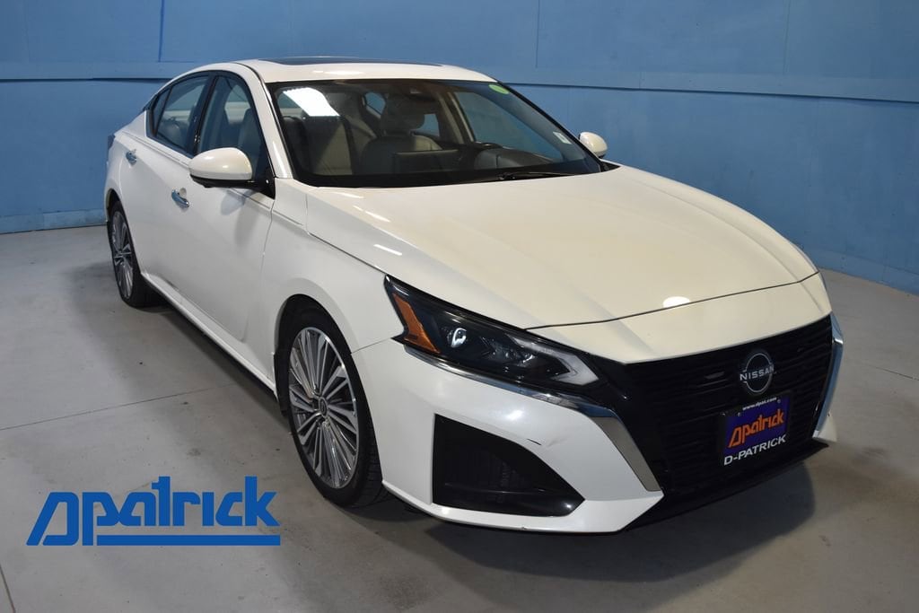 2023 Nissan Altima 2.5 SL Buy this used vehicle 100% online or in-store. We want you to shop confidently for your next used car at D-Patrick #1 Used Cars on Green River Road. D-Patrick #1 Used Cars are put through an extensive inspection before hitting our lot. Because of this, we are able to offer a 3-month/3,000-mile comprehensive limited warranty. You also get our Love It or Return It 5-day, 300-mile Exchange Policy. See our website for more details on both. We also offer extended warranties, additional protection plans, and offer a free to you CarFax vehicle history report. We have a large selection of D-Patrick #1 Used Cars and AS-IS vehicles, all in one location with sale prices starting as low as $2500. We also have a large selection of certified, Audi, BMW, Mercedes-Benz, Porsche, Volkswagen, Ford, Lincoln, Honda, and Nissan. Looking to sell your current vehicle? We have partnered with Kelley Blue Book as Evansvilleâs Instant Cash Offer Buying Center. *Prices listed do not include a $250 documentation fee, applicable tax, title, tags, license, or $195 service and preparation. All pricing, vehicle information, and features (such as accessories and color) are believed to be accurate, but we do not warrant or guarantee such accuracy. The prices shown above may vary from region to region, and incentives are subject to change. Some offers listed may not be available to all customers. All online sale commitments are subject to confirmation of continued availability of vehicle. Once availability is confirmed, online sale agreement becomes binding upon the parties. If any information found on the website is thought to be erroneous, please verify information with a customer service representative. See dealer for full details. CVT with Xtronic, 19" Unique Alloy Wheels, 4-Wheel Disc Brakes, 9 Speakers, ABS brakes, Air Conditioning, Alloy wheels, AM/FM radio: SiriusXM, Auto High-beam Headlights, Automatic temperature control, Blind Spot Warning, Body-Colored Splash Guards, Brake assist, Bumpers: body-color, Chrome Bumper Protector, Compass, Delay-off headlights, Driver door bin, Driver vanity mirror, Dual front impact airbags, Dual front side impact airbags, Electronic Stability Control, Emergency communication system: NissanConnect Services, Floor Mats/Trunk Mat/Hideaway Net, Four wheel independent suspension, Front anti-roll bar, Front Bucket Seats, Front Center Armrest, Front dual zone A/C, Front reading lights, Fully automatic headlights, Heated door mirrors, Heated Front Bucket Seats, Heated front seats, Heated steering wheel, Illuminated entry, Illuminated Kick Plates, Knee airbag, Leather Shift Knob, Leather-Appointed Seat Trim, Low tire pressure warning, Navigation System, Occupant sensing airbag, Outside temperature display, Overhead airbag, Overhead console, Panic alarm, Passenger door bin, Passenger vanity mirror, Power door mirrors, Power driver seat, Power moonroof, Power passenger seat, Power steering, Power windows, Radio data system, Radio: AM/FM w/Bose Premium Sound System, Rear anti-roll bar, Rear Parking Sensors, Rear reading lights, Rear seat center armrest, Rear side impact airbag, Rear window defroster, Remote keyless entry, Security system, Speed control, Speed-sensing steering, Speed-Sensitive Wipers, Split folding rear seat, Steering wheel mounted audio controls, Tachometer, Telescoping steering wheel, Tilt steering wheel, Traction control, Trip computer, Trunk Organizer Tray, Turn signal indicator mirrors, Variably intermittent wipers, CVT with Xtronic. CARFAX One-Owner. 4D Sedan 2.5 SL CVT with Xtronic 2.5L 4-Cylinder DOHC 16V FWD Pearl White Tricoat CALL US TODAY 812-471-7791 and shop online at www.evansvilleusedcars.com.