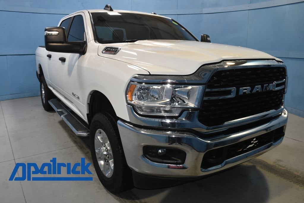 2024 Ram 2500 Big Horn We want you to shop confidently for your next used car at D-Patrick Nissan. Buy this used vehicle 100% online or in-store. This pre-owned vehicle was put through an extensive inspection before hitting our lot. Because of this, we are able to offer a 3-month/3,000-mile comprehensive limited warranty. You also get our Love It or Return It 5-day, 300-mile Exchange Policy. See our website for more details on both. We also offer extended warranties, additional protection plans, and offer a free to you CarFax vehicle history report. We have a large selection of all makes and models in-stock today at the MEGASTORE. Looking to sell your current vehicle? We want to buy your car! *Prices listed do not include a $250 documentation fee, applicable tax, title, tags, license, or $195 service and preparation. All pricing, vehicle information, and features (such as accessories and color) are believed to be accurate, but we do not warrant or guarantee such accuracy. The prices shown above may vary from region to region, and incentives are subject to change. Some offers listed may not be available to all customers. All online sale commitments are subject to confirmation of continued availability of vehicle. Once availability is confirmed, online sale agreement becomes binding upon the parties. If any information found on the website is thought to be erroneous, please verify information with a customer service representative. See dealer for full details. Looking to sell your current vehicle? We buy cars for cash. 2 Way Rear Headrest Seat, 3.73 Axle Ratio, 4 Way Front Headrests, 4-Wheel Disc Brakes, 40/20/40 Split Bench Seat, 6 Speakers, ABS brakes, Active Noise Control System, Air Conditioning, Black Exterior Mirrors, Bluetooth Handsfree Phone & Audio, Brake assist, Bumpers: chrome, Center Hub, Center Stack Storage Drawer, Cloth 40/20/40 Bench Seat, Compass, Connectivity - US/Canada, Delay-off headlights, Driver door bin, Dual front impact airbags, Dual front side impact airbags, Electronic Stability Control, Electronically Controlled Throttle, Emergency communication system: SiriusXM Guardian, Exterior Mirrors w/Heating Element, Front anti-roll bar, Front Center Armrest w/Storage, Front reading lights, Fully automatic headlights, Global Telematics Box Module (TBM), GPS Antenna Input, Heated door mirrors, Illuminated entry, Integrated Center Stack Radio, Integrated Voice Command w/Bluetooth, Low tire pressure warning, Manual Adjust 4-Way Driver Seat, Occupant sensing airbag, Outside temperature display, Overhead airbag, Overhead console, Panic alarm, ParkView Rear Back-Up Camera, Passenger door bin, Passenger vanity mirror, Power Adjust Mirrors, Power door mirrors, Power steering, Power windows, Radio data system, Radio: Uconnect 3 w/5" Display, Rear anti-roll bar, Rear Folding Seat, Rear seat center armrest, Rear step bumper, Remote keyless entry, SiriusXM Radio Service, Speed control, Tachometer, Tilt steering wheel, Tip Start, Traction control, Trip computer, Turn signal indicator mirrors, Variably intermittent wipers, Voltmeter, Wheels: 18" x 8.0" Steel Chrome Clad. CARFAX One-Owner. Clean CARFAX. 4D Crew Cab Big Horn 8-Speed Automatic 6.4L V8 4WD Bright White Clearcoat CALL TODAY 812-473-6500 and shop online at www.dpatricknissan.com.