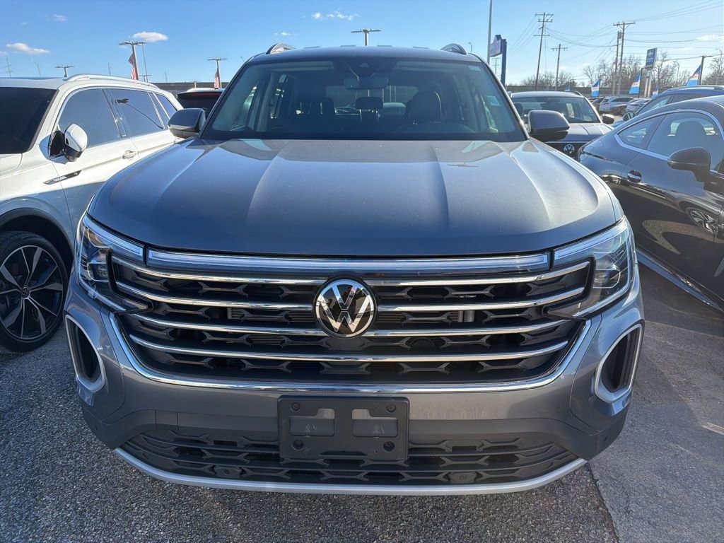 2024 Volkswagen Atlas 2.0T SE w/Technology We want you to shop confidently for your next used car at The BIG Ford Store, D-Patrick Ford. We are located on Highway 41 and Walnut in Evansville, right next to the Lloyd Expressway. Buy this used vehicle 100% online or in-store. This pre-owned vehicle was put through an extensive inspection before hitting our lot. Because of this, we are able to offer a 3-month/3,000-mile comprehensive limited warranty. You also get our Love It or Return It 5-day, 300-mile Exchange Policy. See our website for more details on both. We also offer extended service plans, vehicle protection plans, and offer a free to you CarFax vehicle history report. *Prices listed do not include a $250 documentation fee, applicable tax, title, tags, license, or $195 service and preparation. All pricing, vehicle information, and features (such as accessories and color) are believed to be accurate, but we do not warrant or guarantee such accuracy. The prices shown above may vary from region to region, and incentives are subject to change. Some offers listed may not be available to all customers. All online sale commitments are subject to confirmation of continued availability of vehicle. Once availability is confirmed, online sale agreement becomes binding upon the parties. If any information found on the website is thought to be erroneous, please verify information with a customer service representative. See dealer for full details. Looking to sell your current vehicle? We buy cars for cash. Every test drive at D-Patrick Ford in Evansville earns $10 to a local charity. Schedule your test drive today! 3.60 Axle Ratio, 3rd row seats: split-bench, 4-Wheel Disc Brakes, 6 Speakers, ABS brakes, Air Conditioning, Alloy wheels, AM/FM radio: SiriusXM with 360L, Auto-Dimming Rear-View Mirror, Auto-dimming Rear-View mirror, Automatic temperature control, Brake assist, Bumpers: body-color, Carpeted Mats - Bench Seats (DISC), Compass, Delay-off headlights, Driver door bin, Driver vanity mirror, Dual front impact airbags, Dual front side impact airbags, Electronic Stability Control, Emergency communication system: VW Car-Net Safe & Secure 5-year, Exterior Parking Camera Rear, Four wheel independent suspension, Front anti-roll bar, Front Bucket Seats, Front Center Armrest, Front dual zone A/C, Front fog lights, Front reading lights, Fully automatic headlights, Heated door mirrors, Heated front seats, Heated steering wheel, Heated/Actively Ventilated Front Bucket Seats, Illuminated entry, Low tire pressure warning, Occupant sensing airbag, Outside temperature display, Overhead airbag, Overhead console, Panic alarm, Passenger door bin, Passenger vanity mirror, Perforated V-Tex Leatherette Seating Surfaces, Power door mirrors, Power driver seat, Power Liftgate, Power steering, Power windows, Radio data system, Radio: MIB3 Composition Media, Rain sensing wipers, Rear air conditioning, Rear anti-roll bar, Rear reading lights, Rear seat center armrest, Rear window defroster, Rear window wiper, Remote keyless entry, Security system, Speed control, Speed-sensing steering, Split folding rear seat, Spoiler, Standard Suspension, Steering wheel mounted audio controls, Tachometer, Telescoping steering wheel, Tilt steering wheel, Traction control, Trip computer, Turn signal indicator mirrors, Variably intermittent wipers, Ventilated front seats, VW Care, Wheels: 20" 2-Tone Machined Alloy. CARFAX One-Owner. 4D Sport Utility 2.0T SE w/Technology 8-Speed Automatic with Tiptronic 2.0L TSI AWD Platinum Gray Metallic CALL TODAY (812) 625-4823 OR SHOP ONLINE AT WWW.DPATRICKFORD.COM.